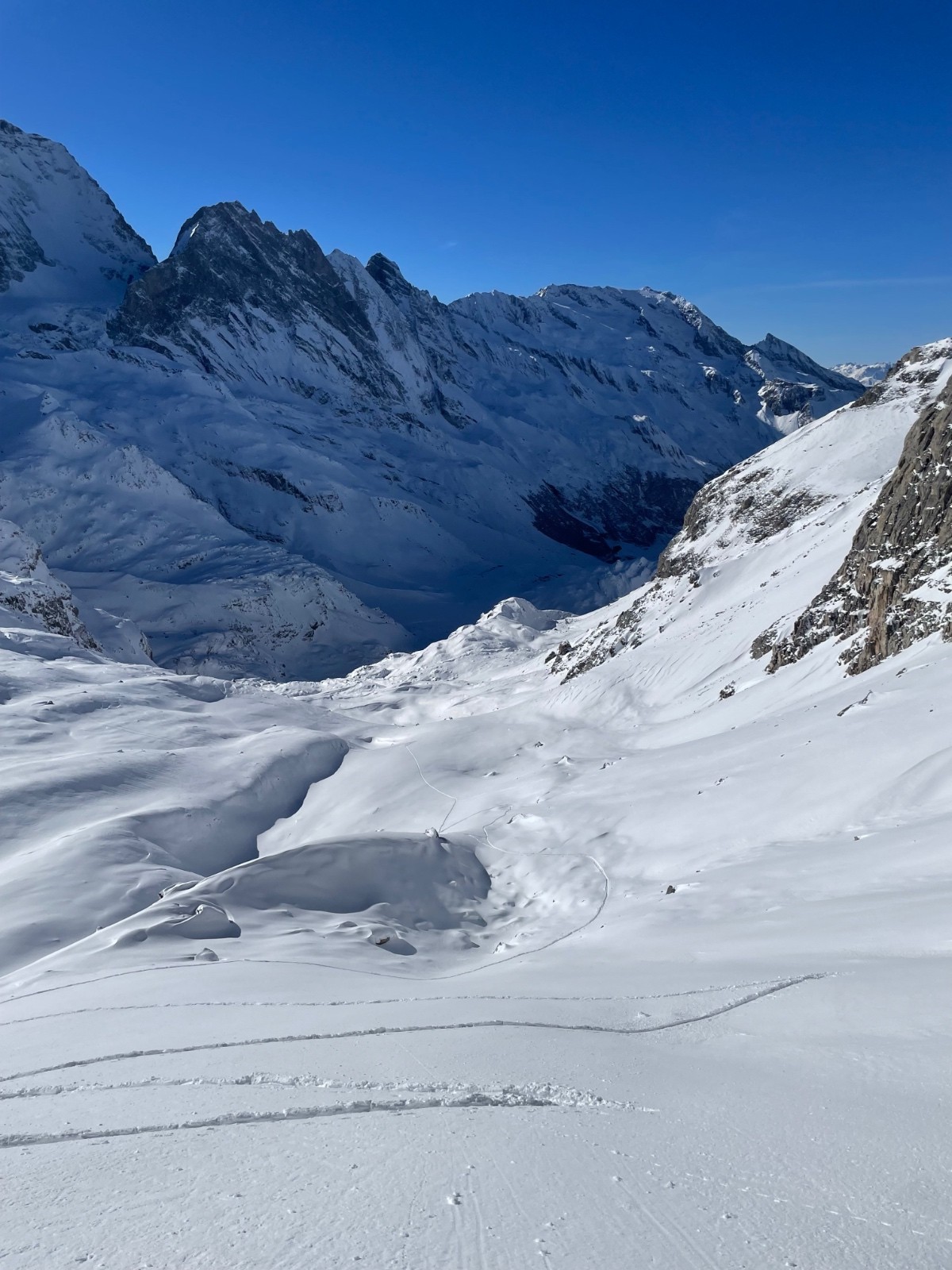 Une plaquouille déclenchée volontairement pile dans la rupture de pente.
