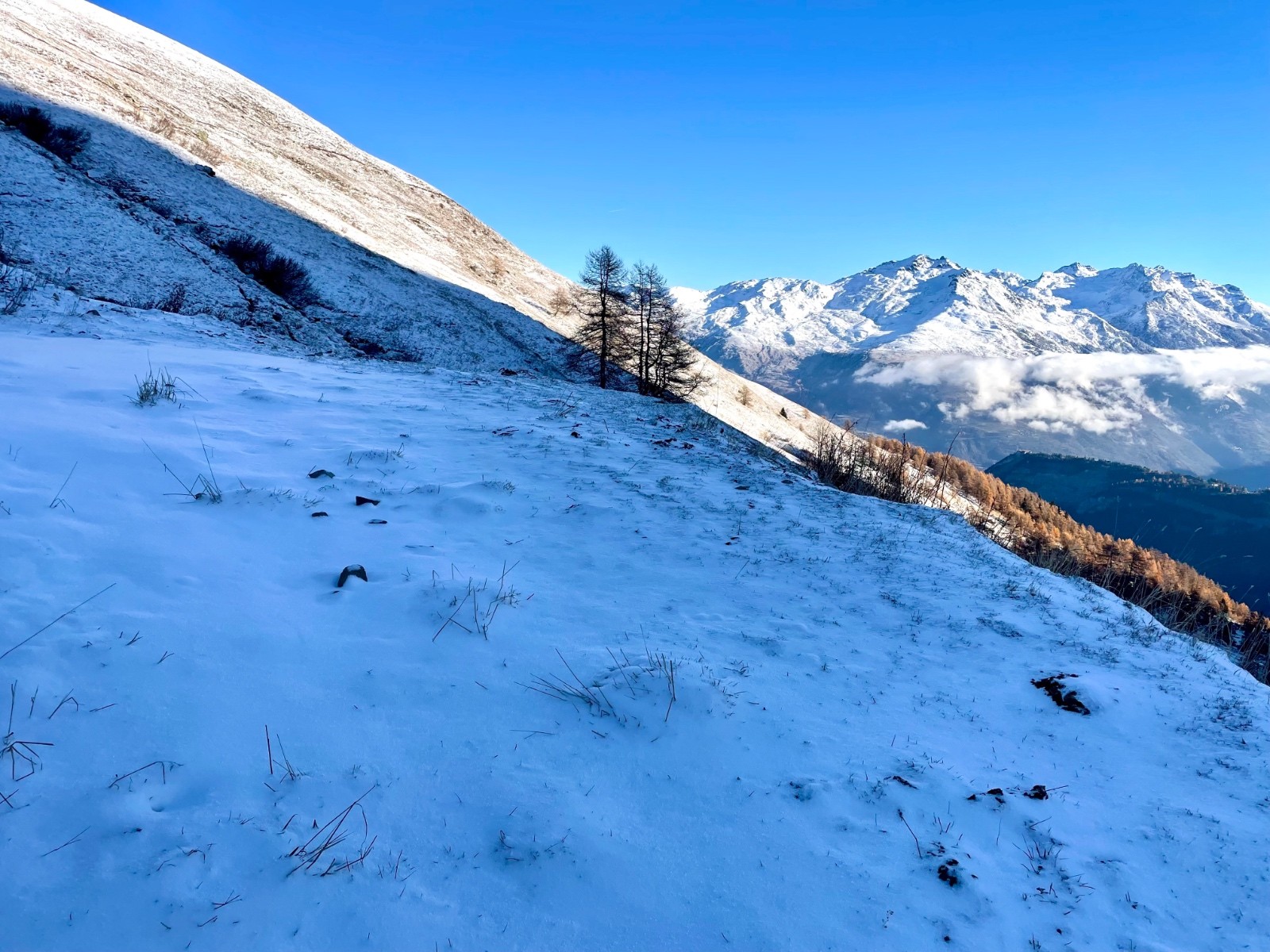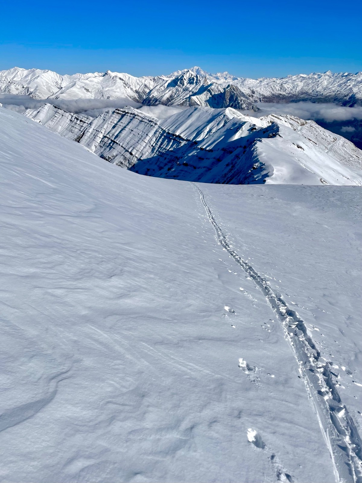 Une première sortie précoce on chausse à 1950 en restant dans le chemin, on trouve une vrai sous-couche à 2300. Le vent a bien nettoyer les crêtes, on trouve des cailloux jusqu’en haut. Neige un peu cartonnée par endroits.