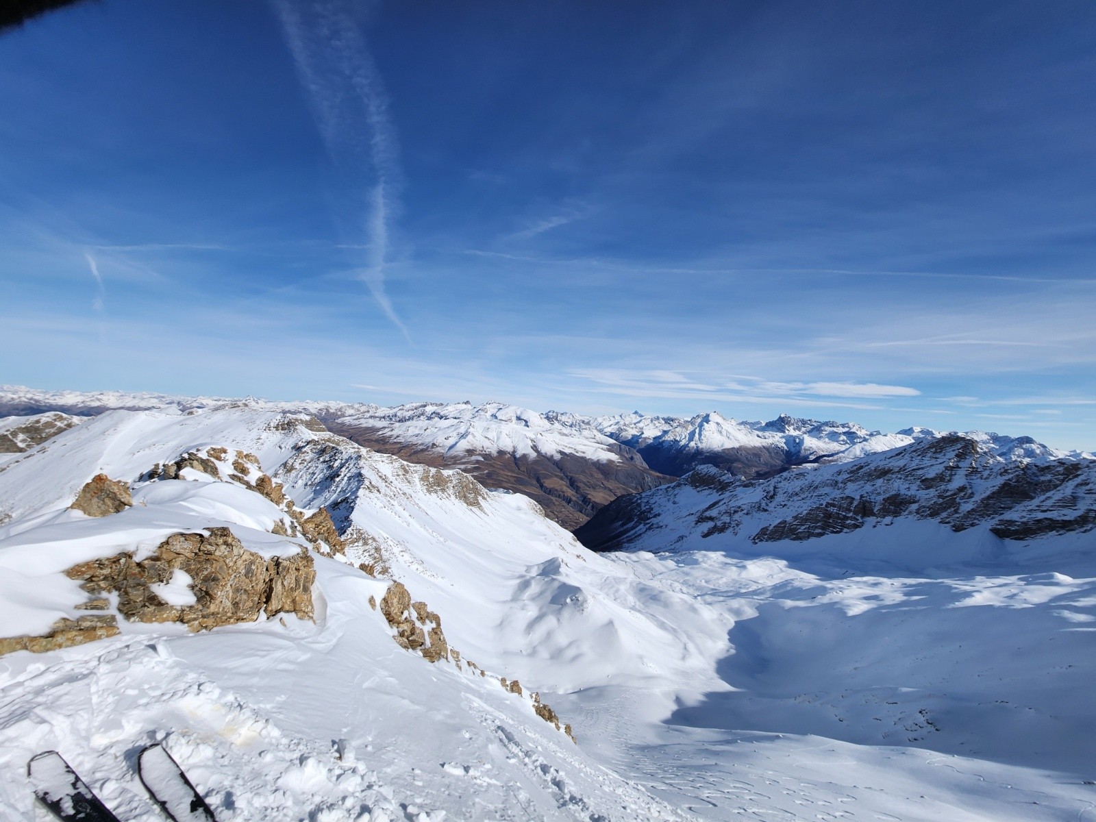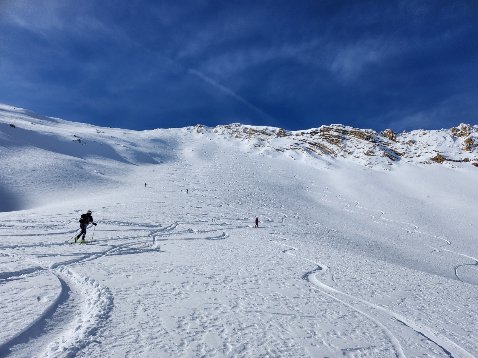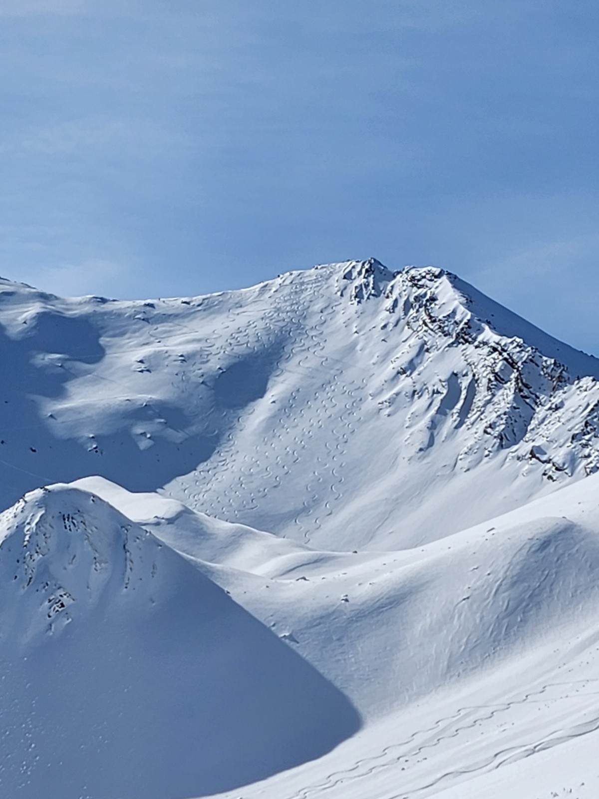 Conditions pour le ski : Peu de neige au départ mais s'epaississant rapidement. Excellentes conditions dans les faces nord et est : poudreuse tassée