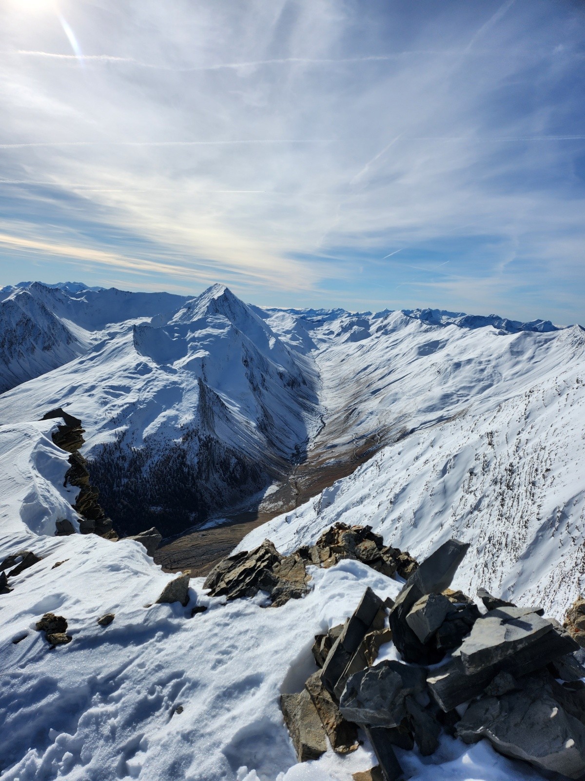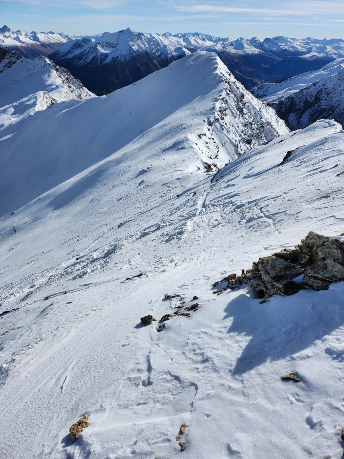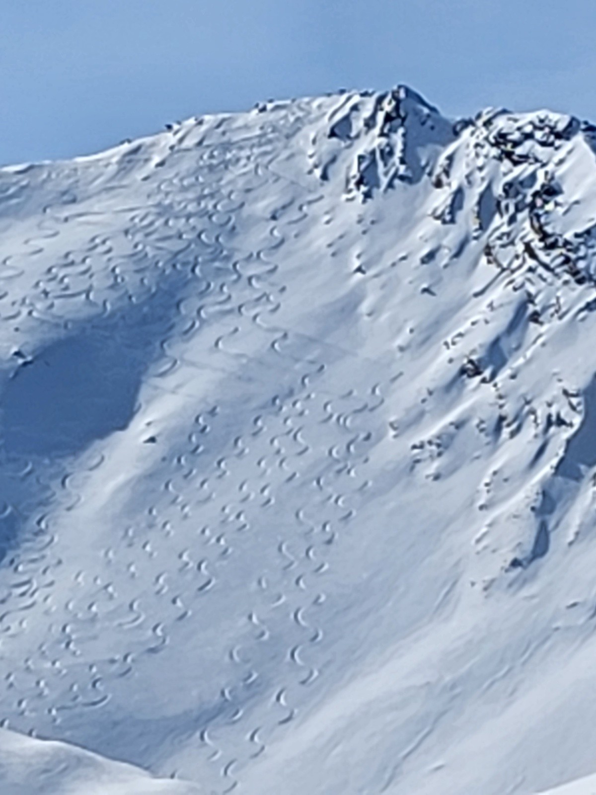 Conditions pour le ski : Peu de neige au départ mais s'epaississant rapidement. Excellentes conditions dans les faces nord et est : poudreuse tassée