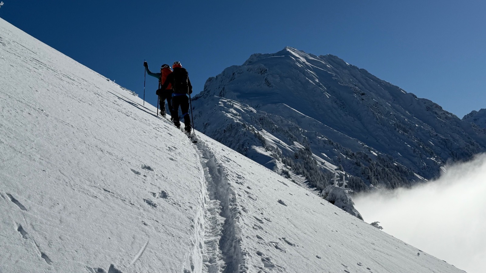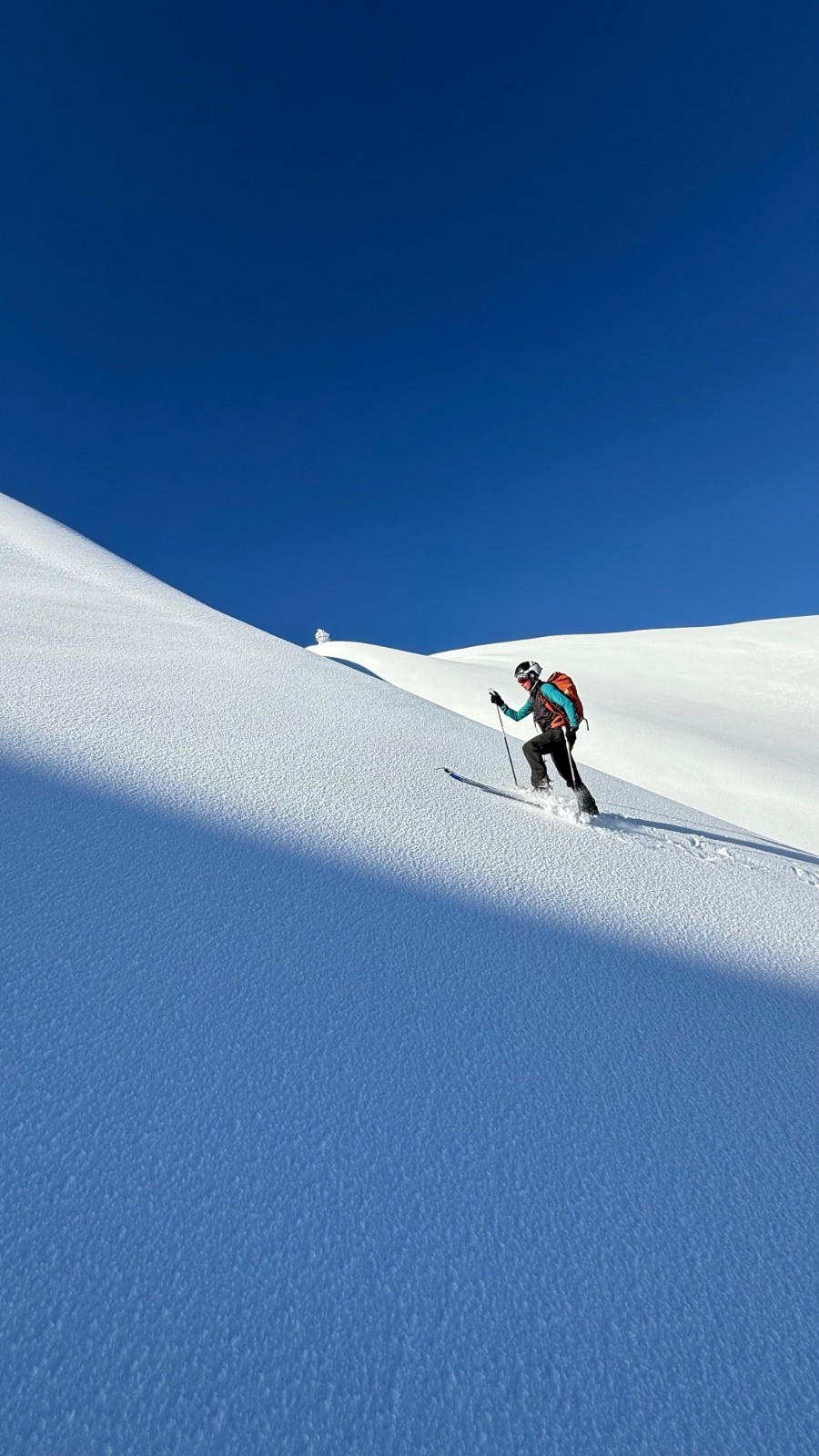 Conditions nivo et activité avalancheuse : ça semble pas pire ! Rien vu sur notre sortie. Très peu de trace de vent. Une neige qui ne demande qu’à accélérer