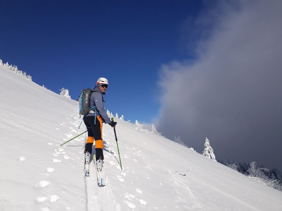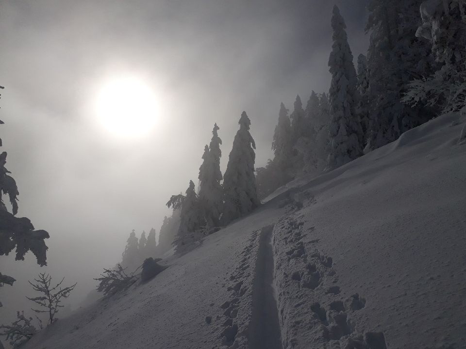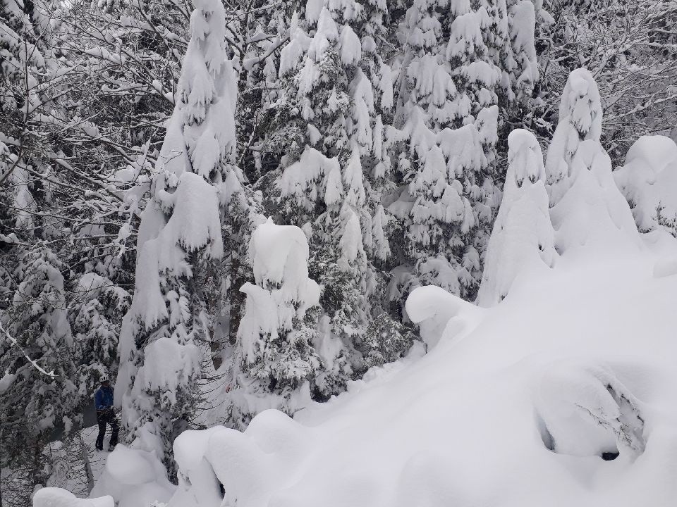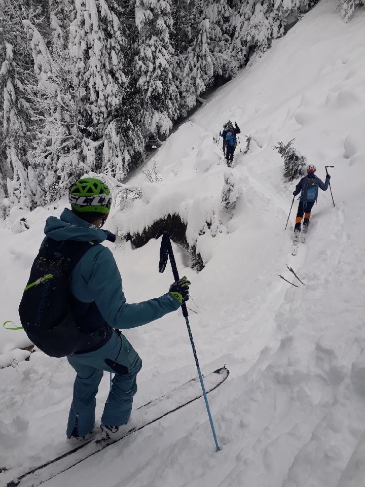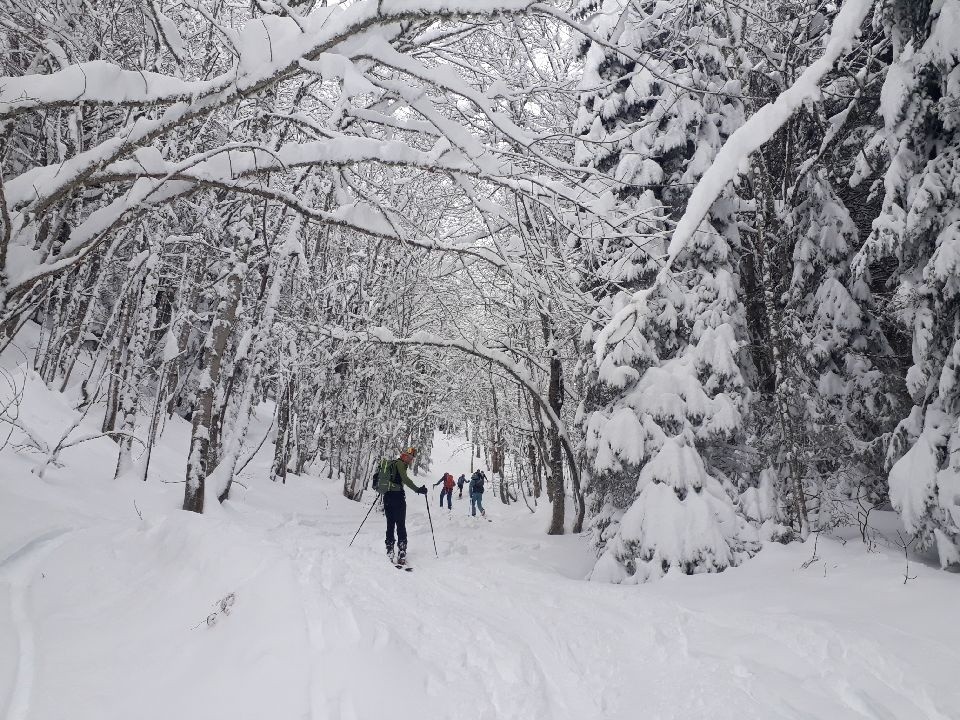 Conditions pour le ski : grosse quantités rendant le ski sans soucis de partout même en forêt. S'alourdissant un chouia dans la foret sous 1500, mais restant très skiante dans ce bois bien aéré (avec 100 au patin)
