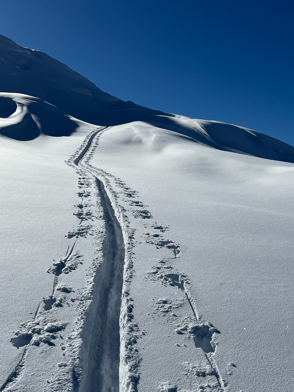 Conditions nivo et activité avalancheuse : RAS sur notre cheminement. Aucun Whouf, aucune fissure dans le manteau neigeux, aucune coulée. Par contre vus d'en face, nombreux départs naturels en sud sous l'Aiguille Croche.