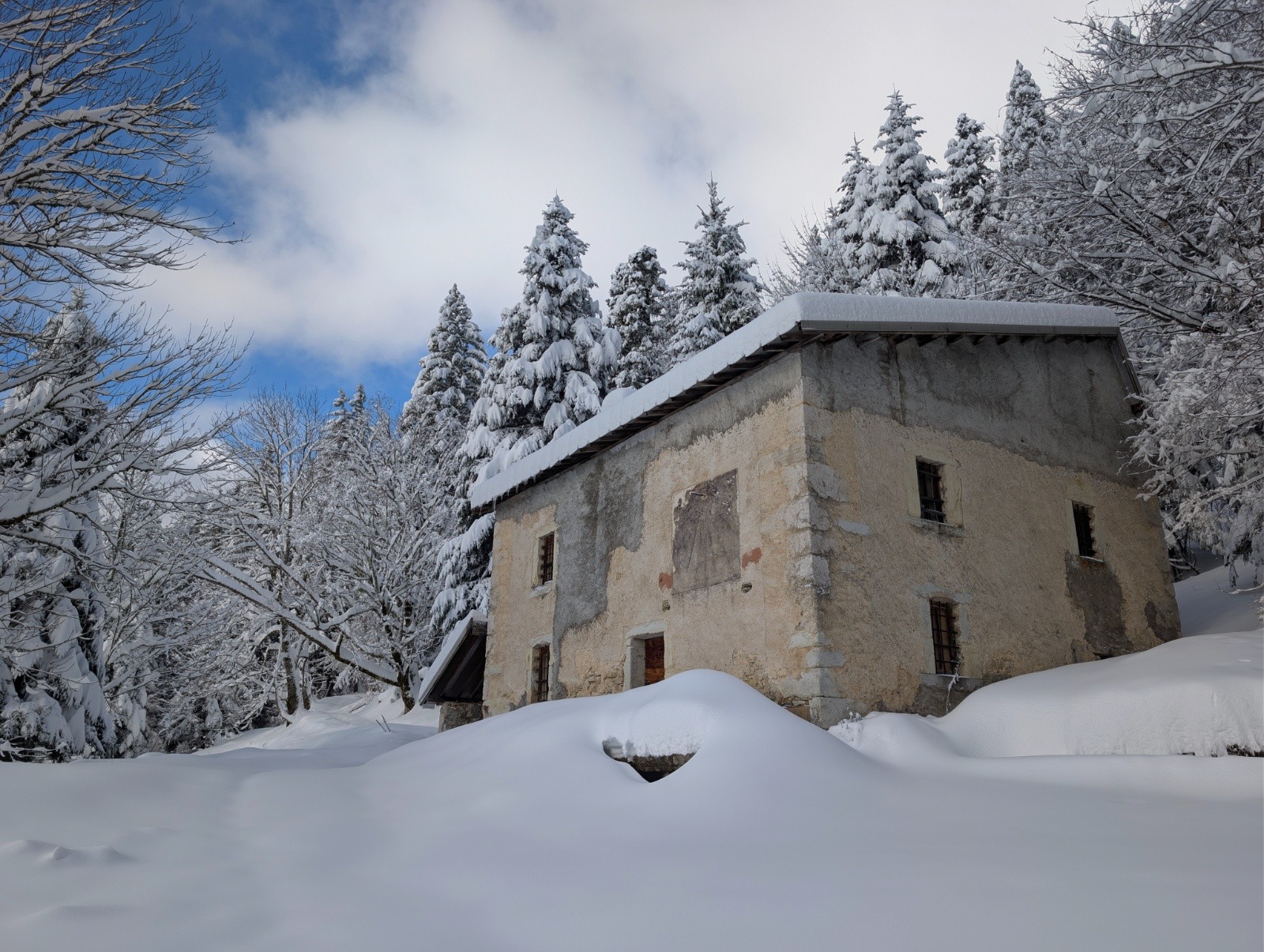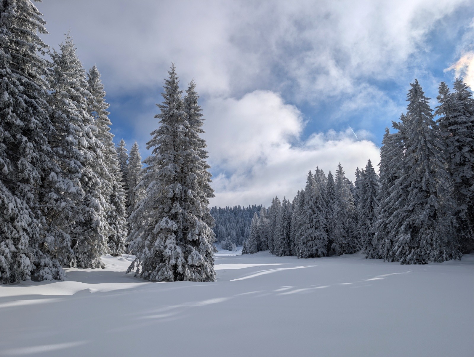Un coin de Chartreuse un peu secret, assurément discret, rarement en conditions, fallait pas rater le créneau. Pas pour se garer, c'était tout bien dégagé. Par contre pas de trace, enfin pas vraiment, c'était gavé de pieds de cerfs. Y doivent en chier un peu avec cette épaisseur blanche. Enfin j'espère, car moi qui ne suis pas cerf, j'ai trouvé fâcheux de tracer de A.à Z. Pas comme ce mâle cerf qui suivait sa biche, lui laissant faire le boulot. #meetoo n'est pas arrivé là.