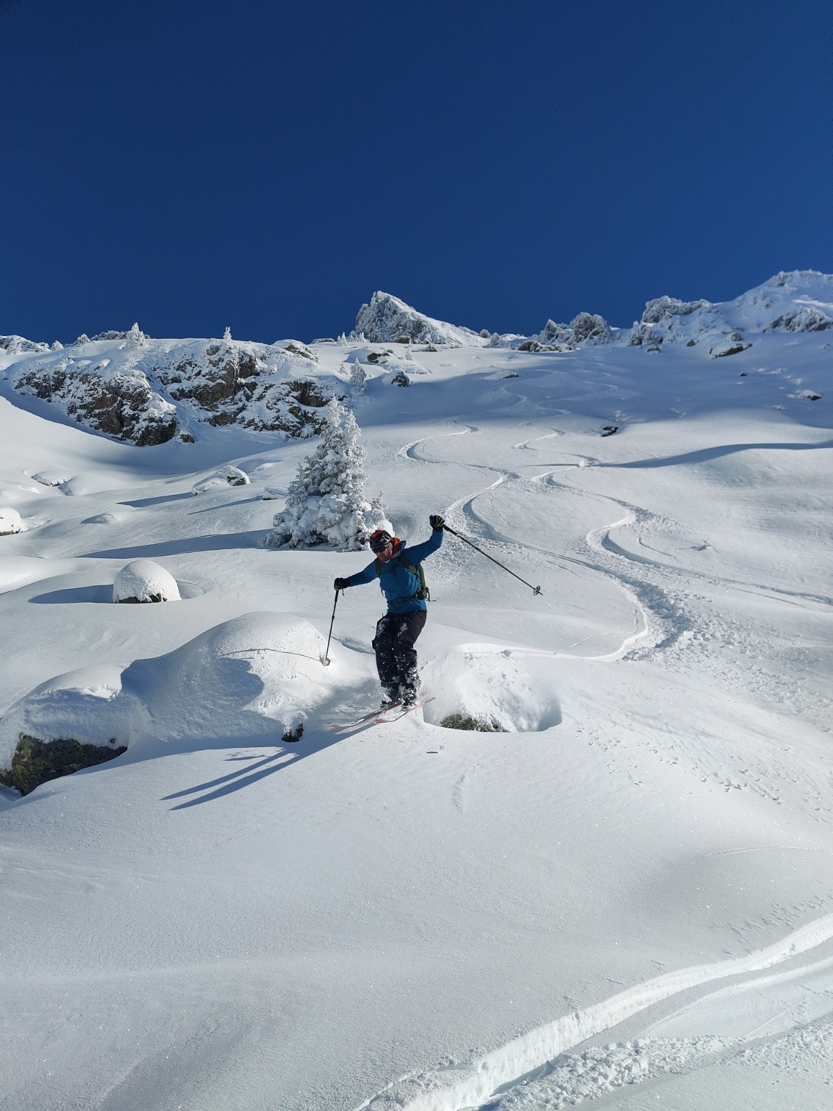 Excellente première sortie de la saison au col de l'aigleton ! On part de la voiture skis aux pieds. Merci au chasse neige qui nous permet de monter sans soucis malgré les quantités de neige !