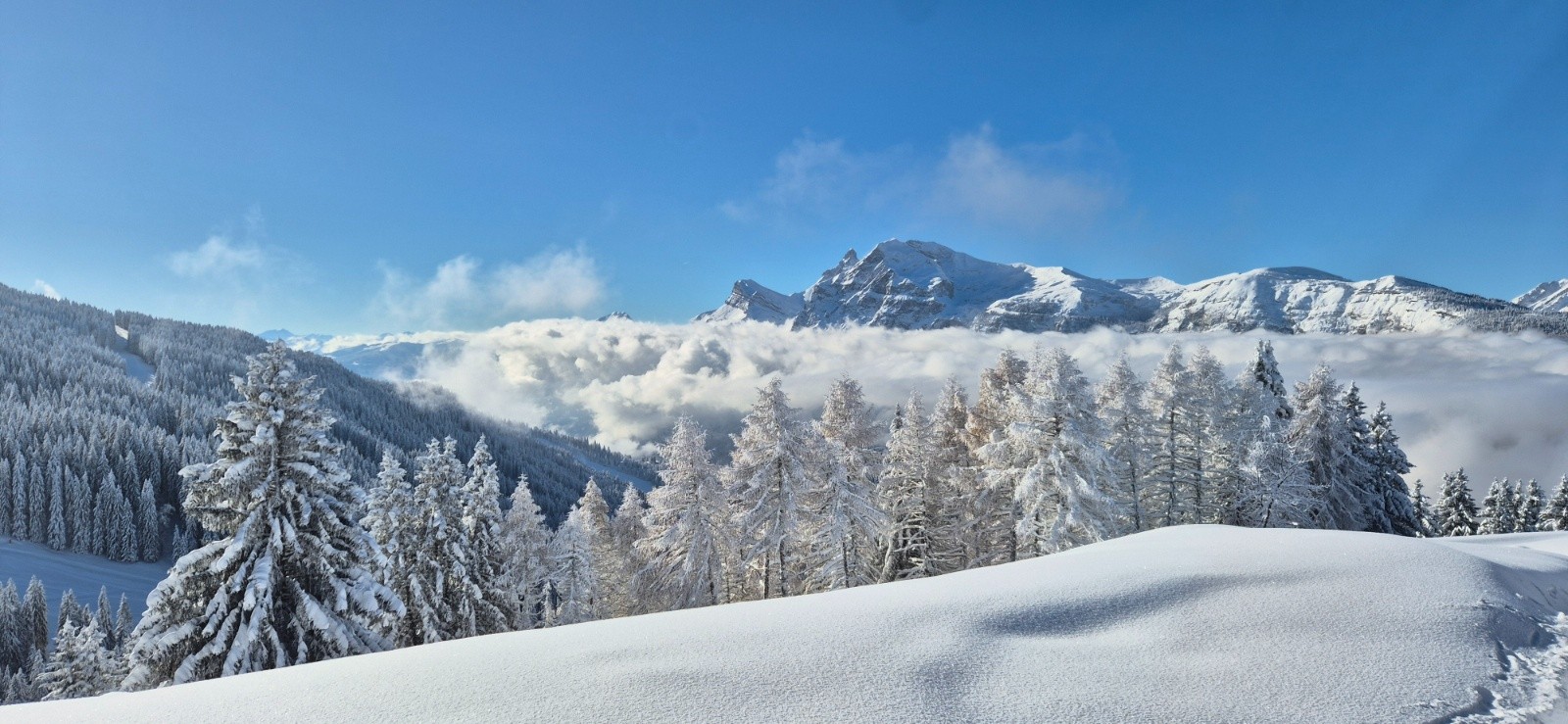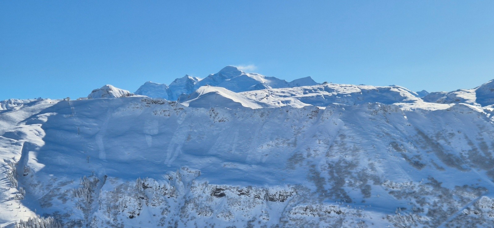 Conditions nivo et activité avalancheuse : neige bien froide, pas de coulée sur tout le parcours. (coulées visibles sur pentes raides Vernant côté Flaine)