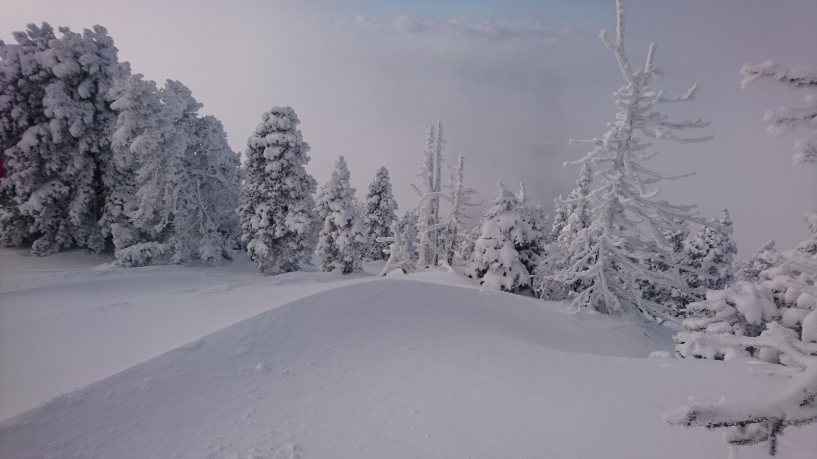 Météo/températures : Temps hivernal avec -4°C au départ vers 10h, des nuages qui enveloppent la montagne, poussés par le vent du nord et du blanc partout - En début d'après-midi, le nuage s'affaiblit, laissant percer le soleil sur des périodes de plus en plus longues.