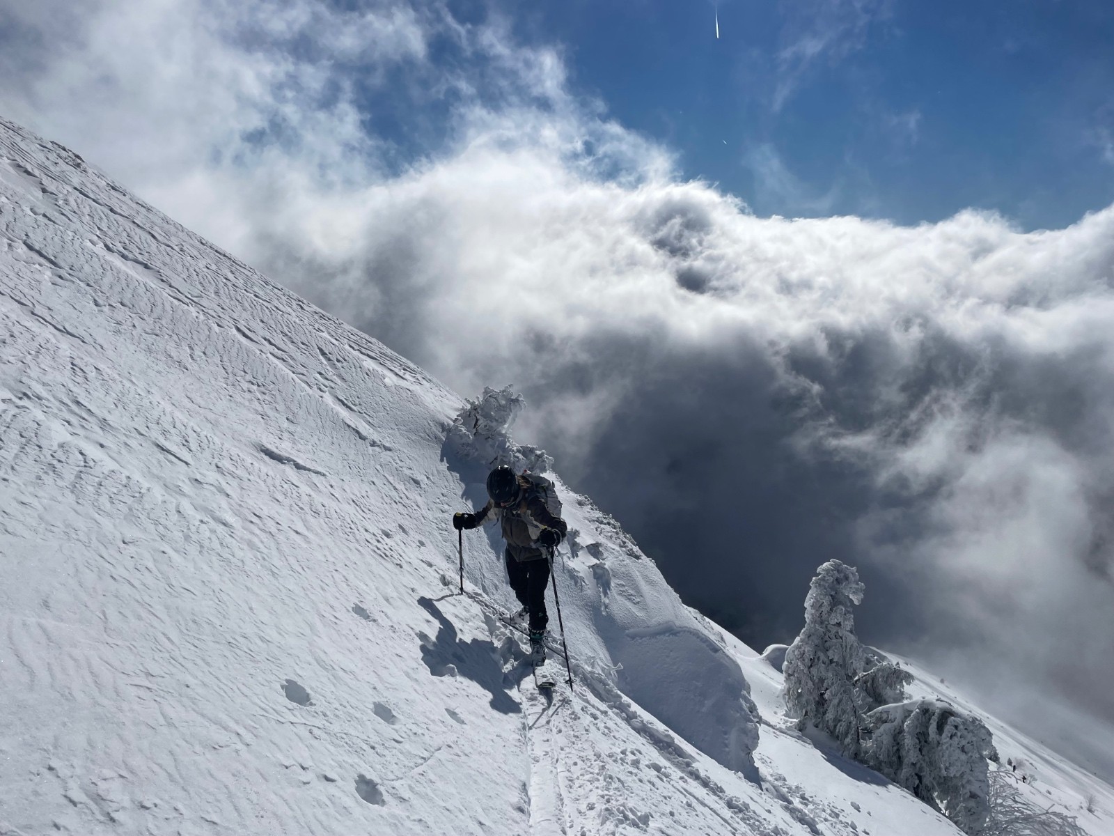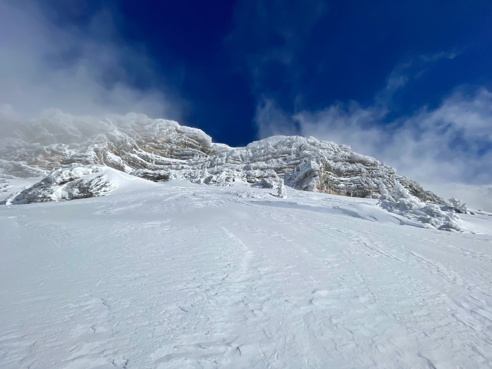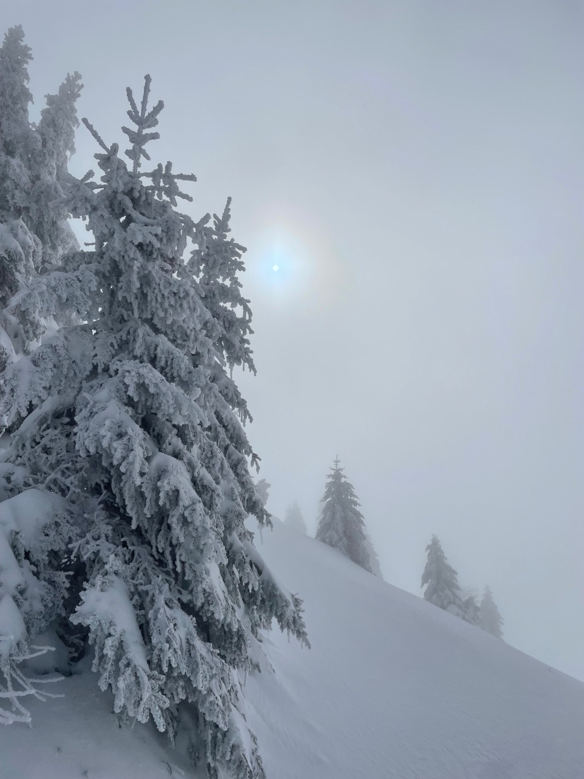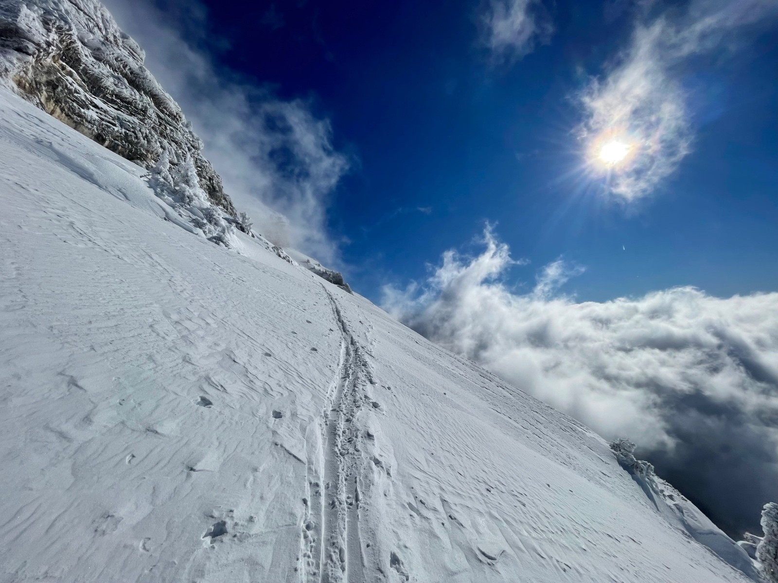 Étonnamment la neige n’est pas en poudre 5 étoiles, elle se tasse déjà à cette altitude.