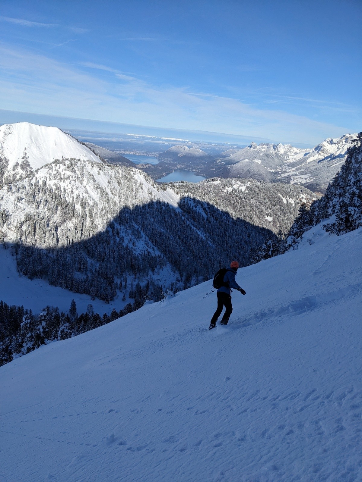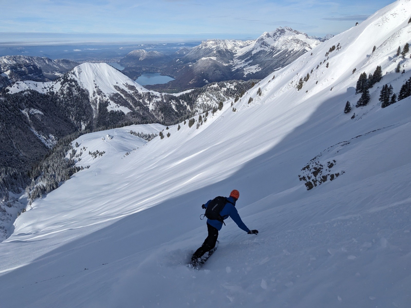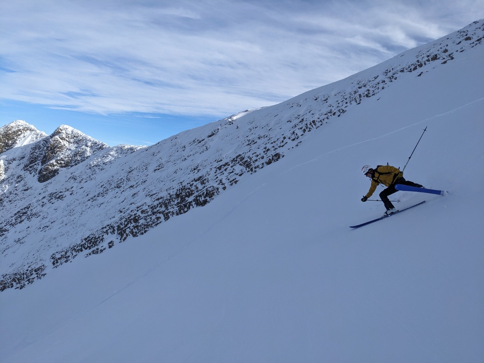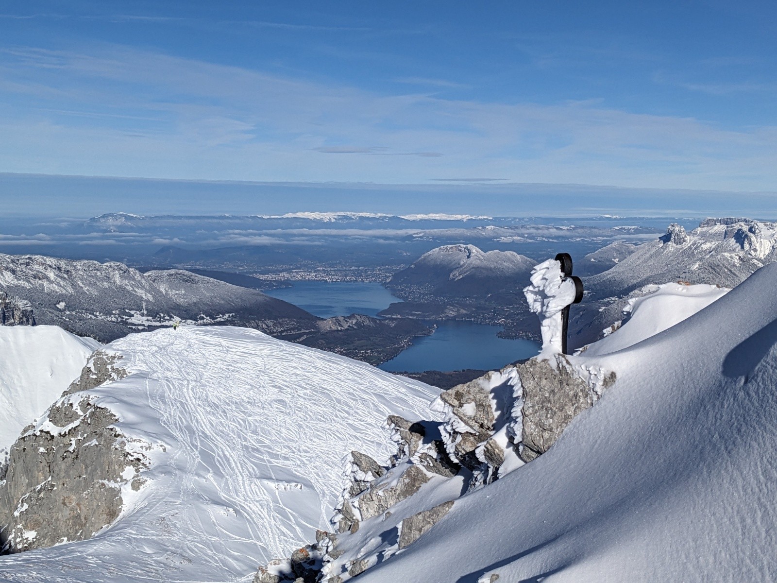 Montée efficace jusqu'à l'épaule de la Sambuy ou on se fait maladroitement griller la première trace de la lingual par un solo 🥹. Entrée dans la lingual un peu sèche et soufflée comme souvent mais bon grip, puis ça déroule dans une belle poudre dense idéale en split. Sortie bien remplie. En bas du près on repeaute pour la petite Chaurionde, il y a du monde sur la trace !