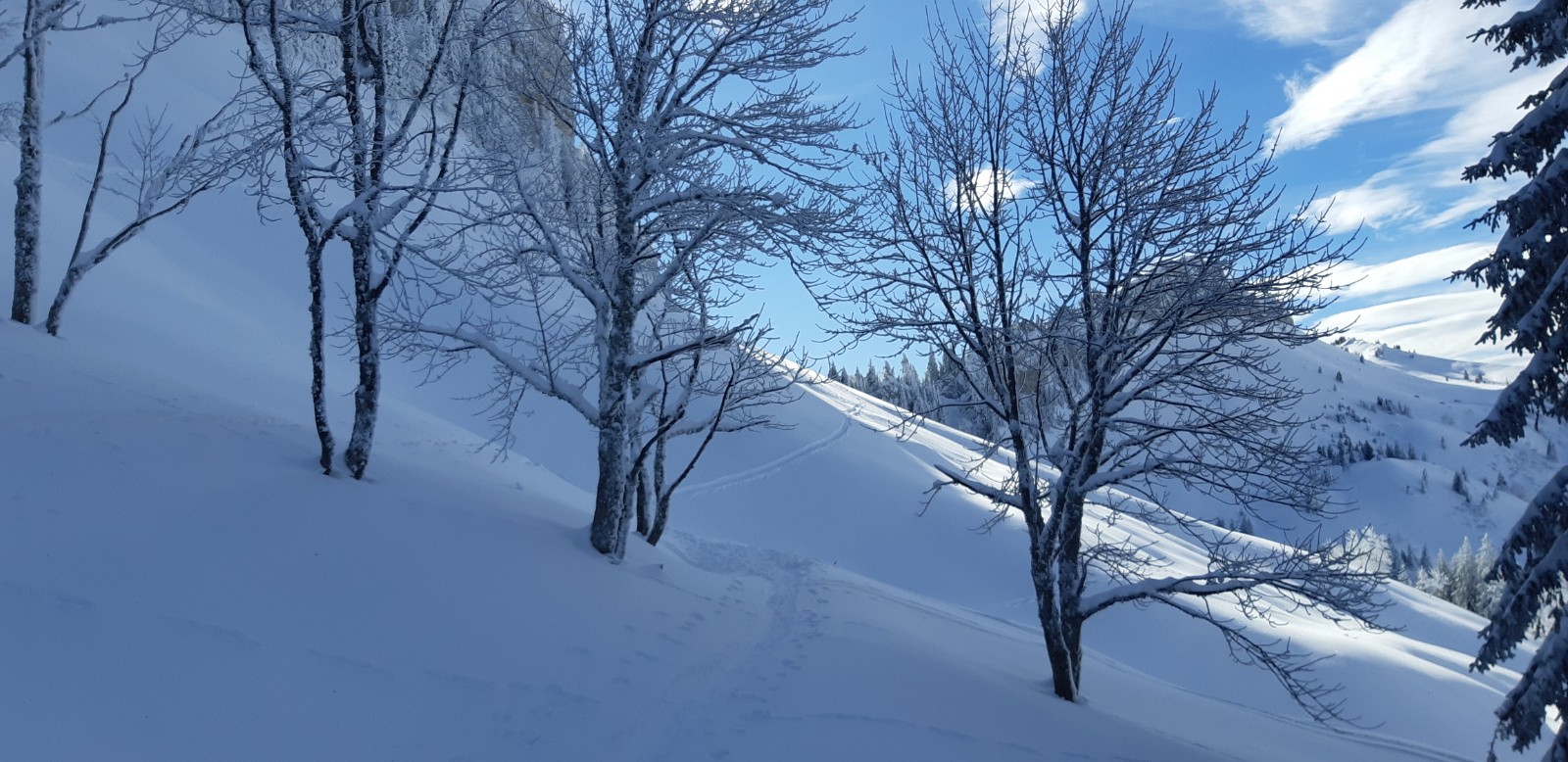 Conditions pour le ski : Excellente, poudre froide en grosse quantité dès le départ, Pas de la Biche bien rempli déjà tracé à notre passage, ski forestier facile sans touchettes, ça passe partout...
