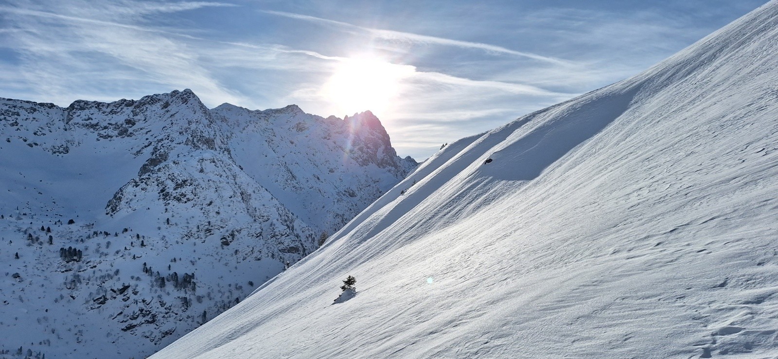 - Belle Étoile sud encore vierge de traces de descente, est excellente avec sur sous couche portante avec 10-15 cm dessus. Les traceurs sont partis en est pour ensuite descendre les Ilettes. La Combe direction Rivière est dantesque avec une bonne poudre légère 25-30 cm.