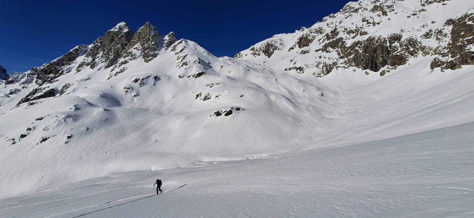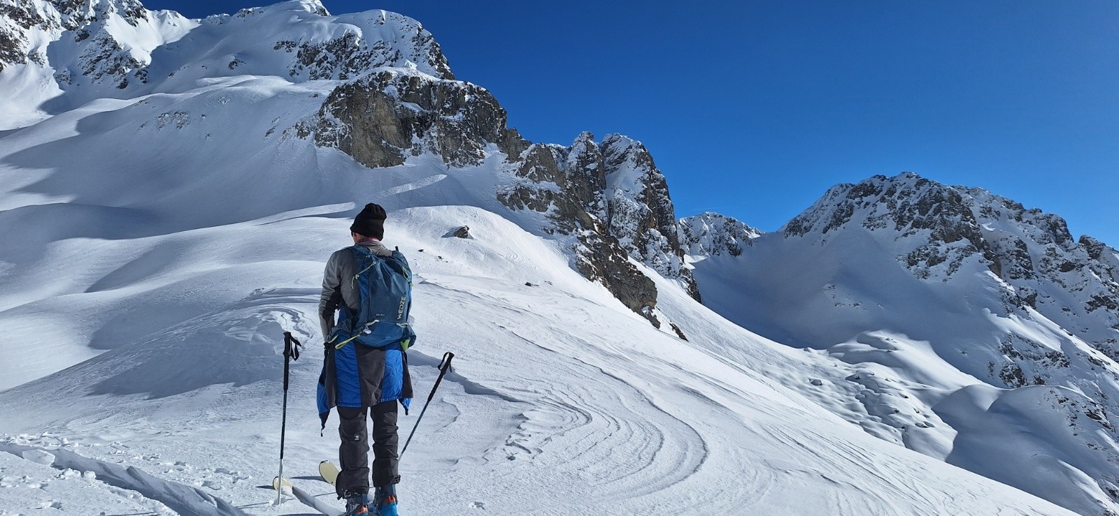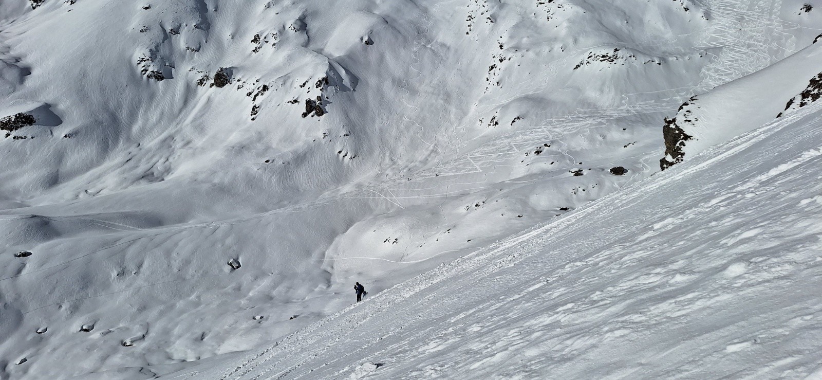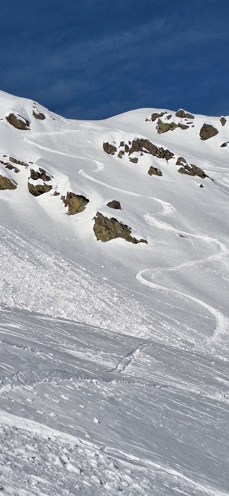 -Cime de la Jasse côté Bedina est en neige croutée fine. Ça passe toutefois super bien. Les contre-pentes restent en poudre. La neige est un peu croutée au dessus du refuge.