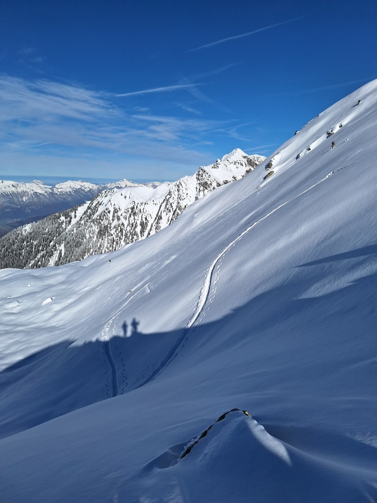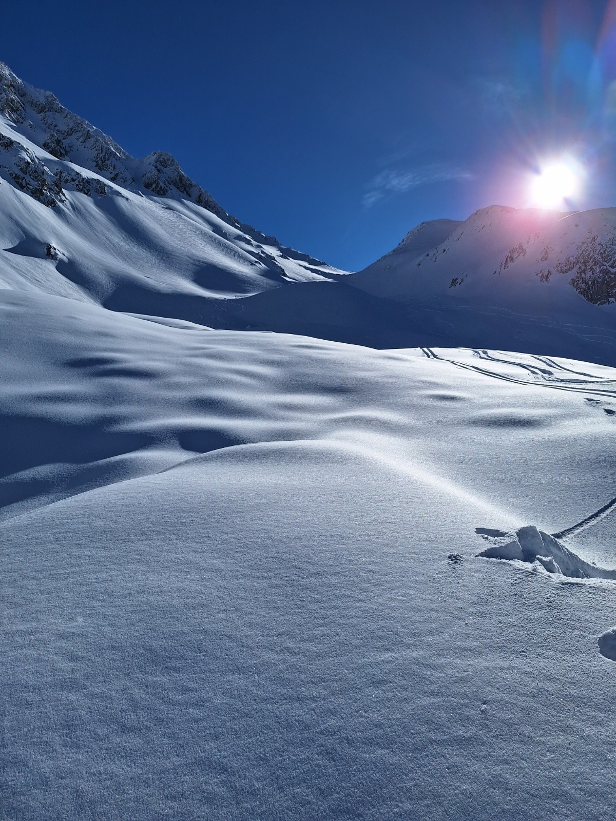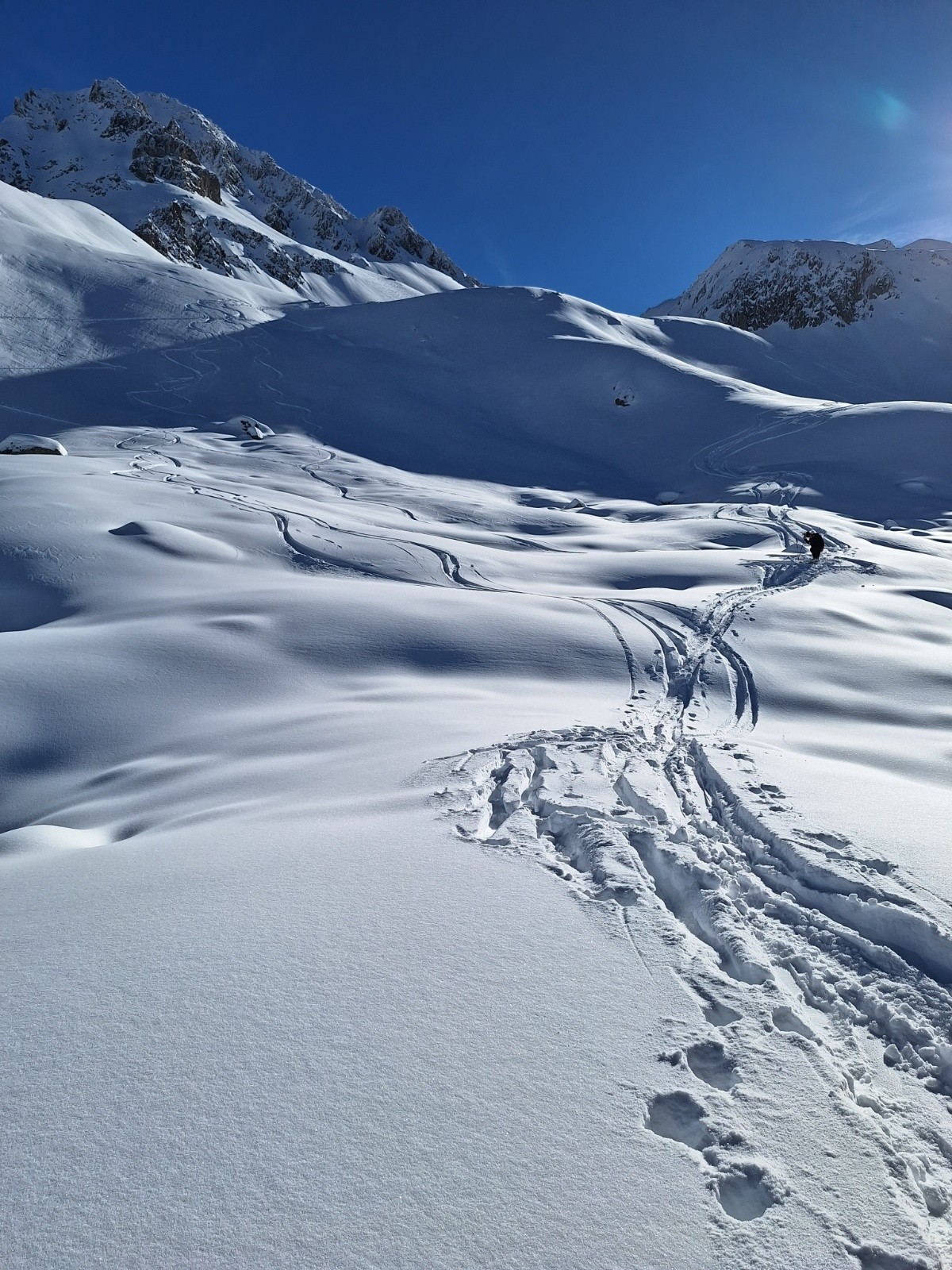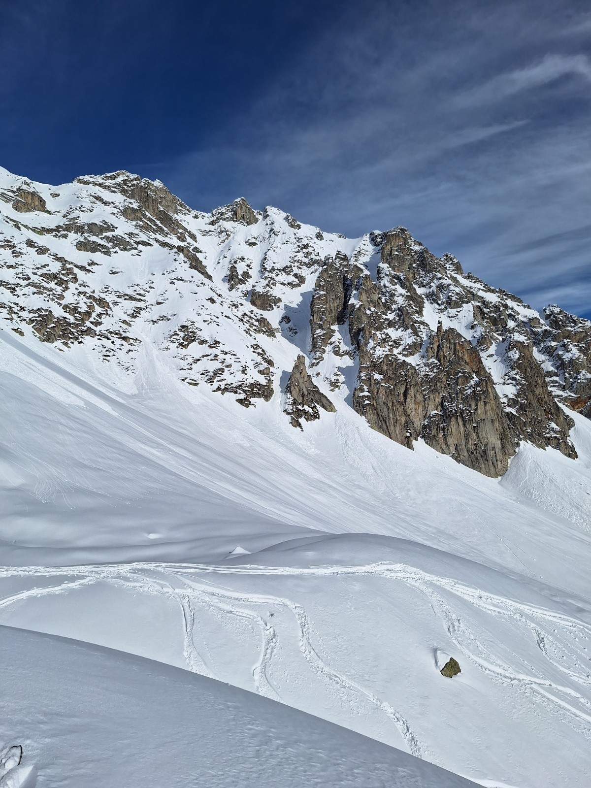 neige en cours d'humidification, pas de sous couche dure, aucune touchettes à la descente