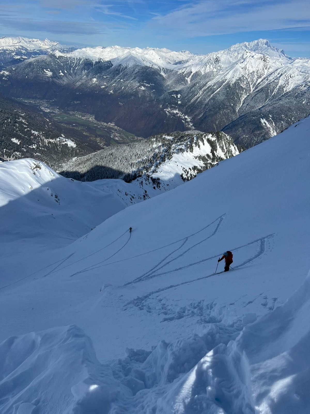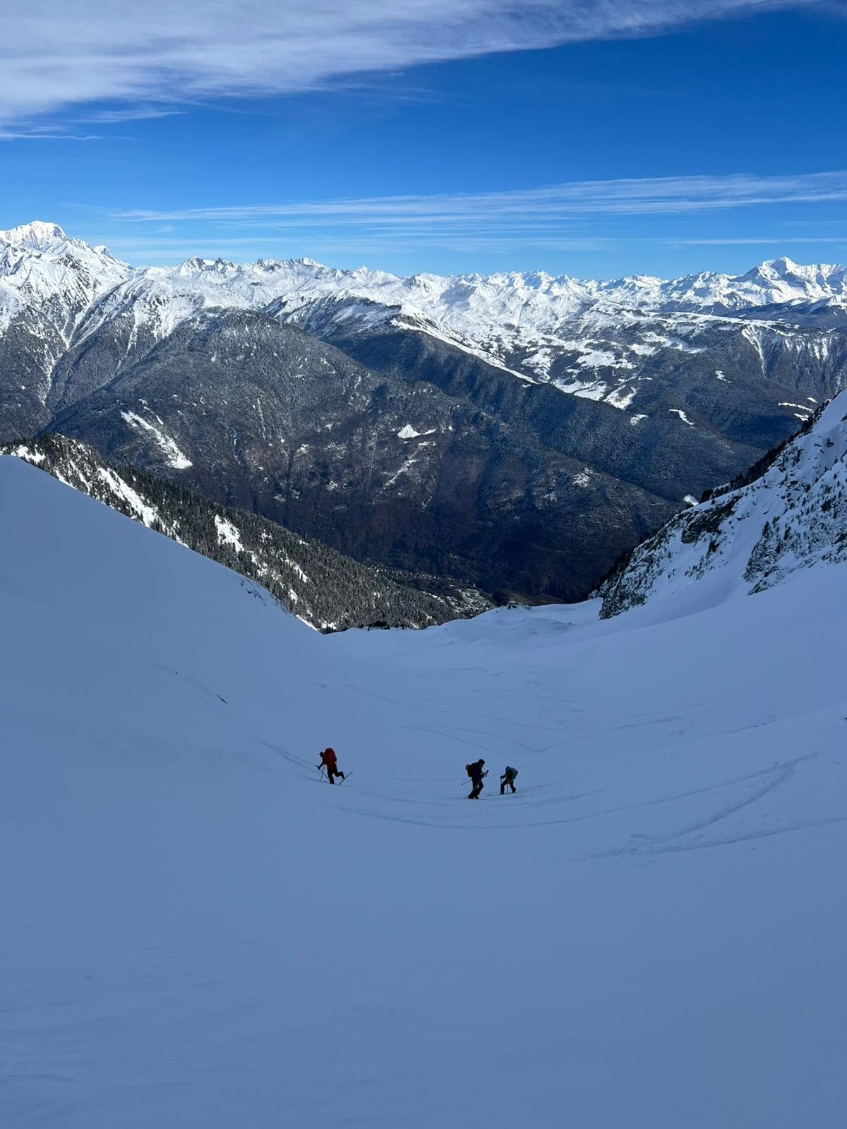 Conditions pour le ski : un peu lourde et croûté sur la fin sur les pente qui ont chauffé, bonne dans la combe Nord, un peu venté par moment