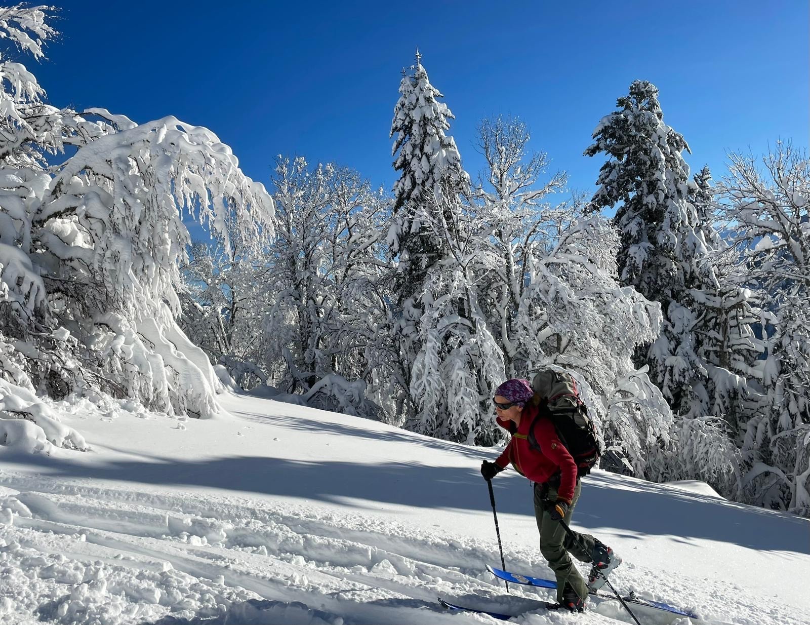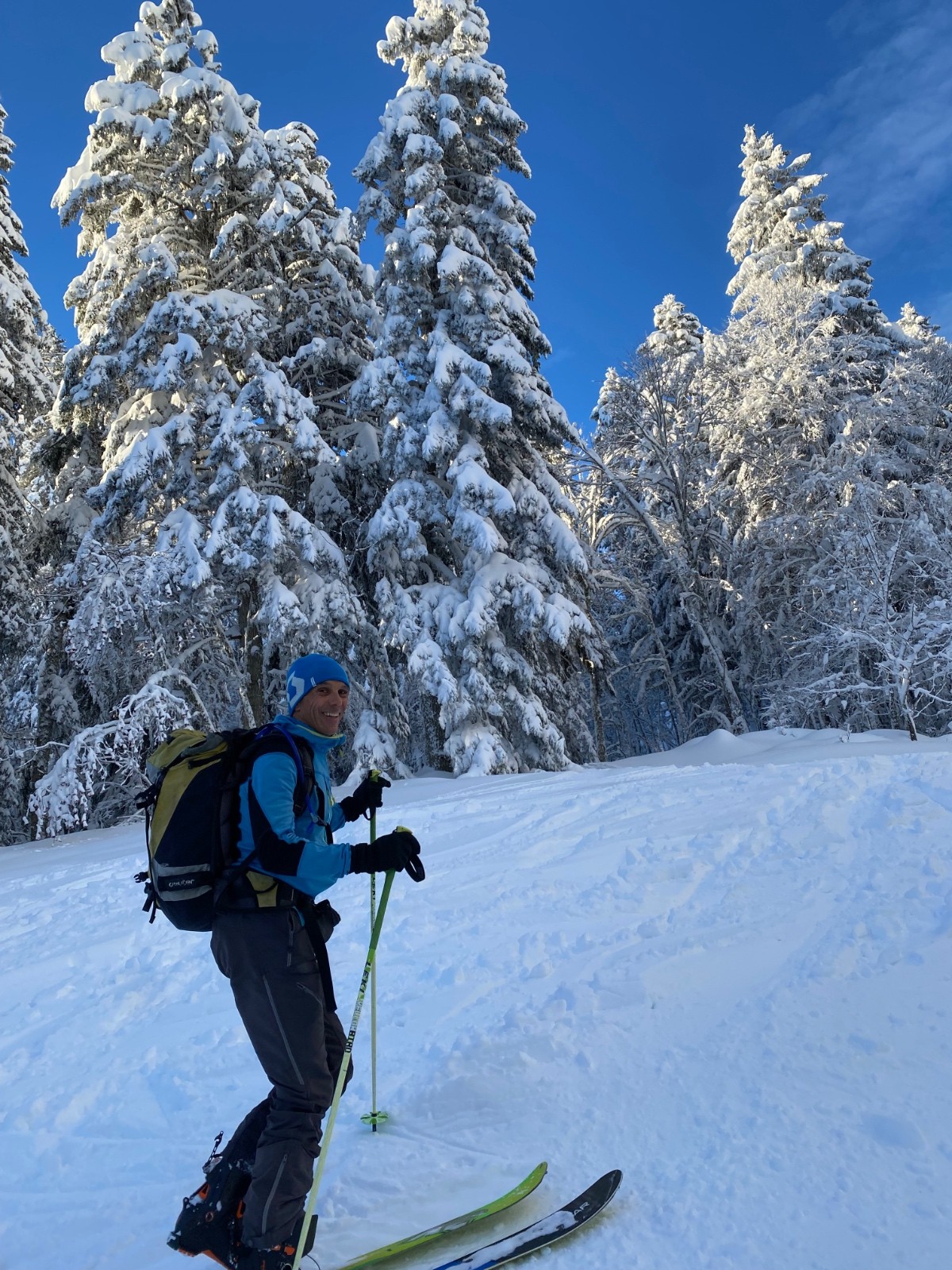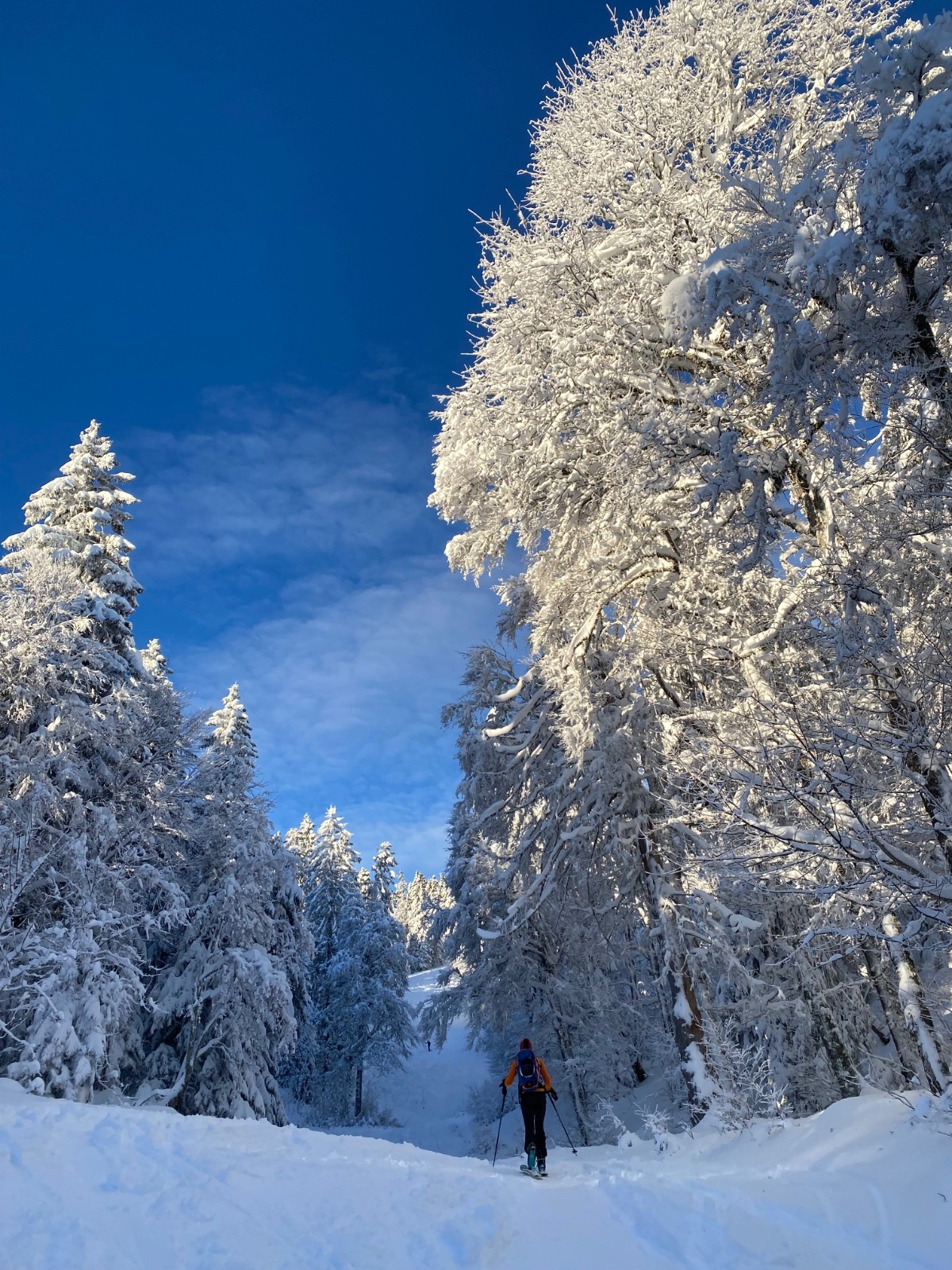 Conditions pour le ski : neige froide côté nord et très skiante dans la forêt jusqu’à fontaine froide