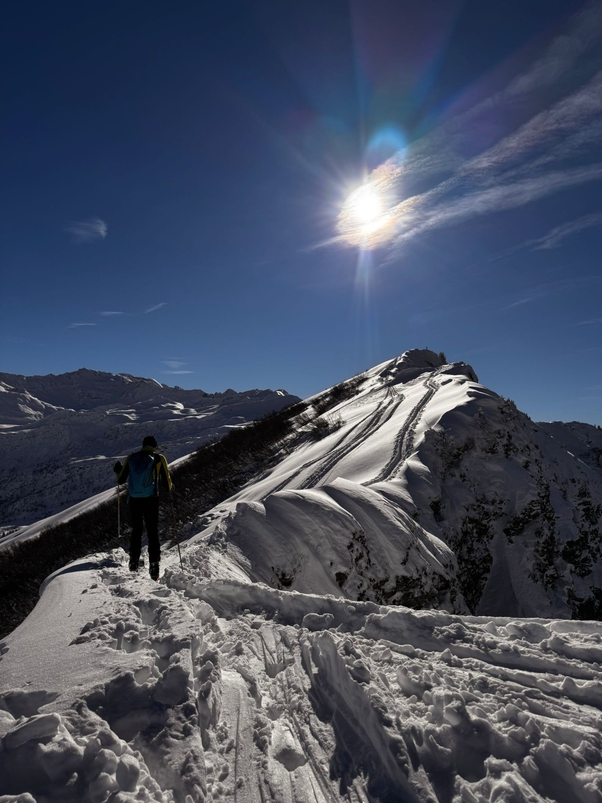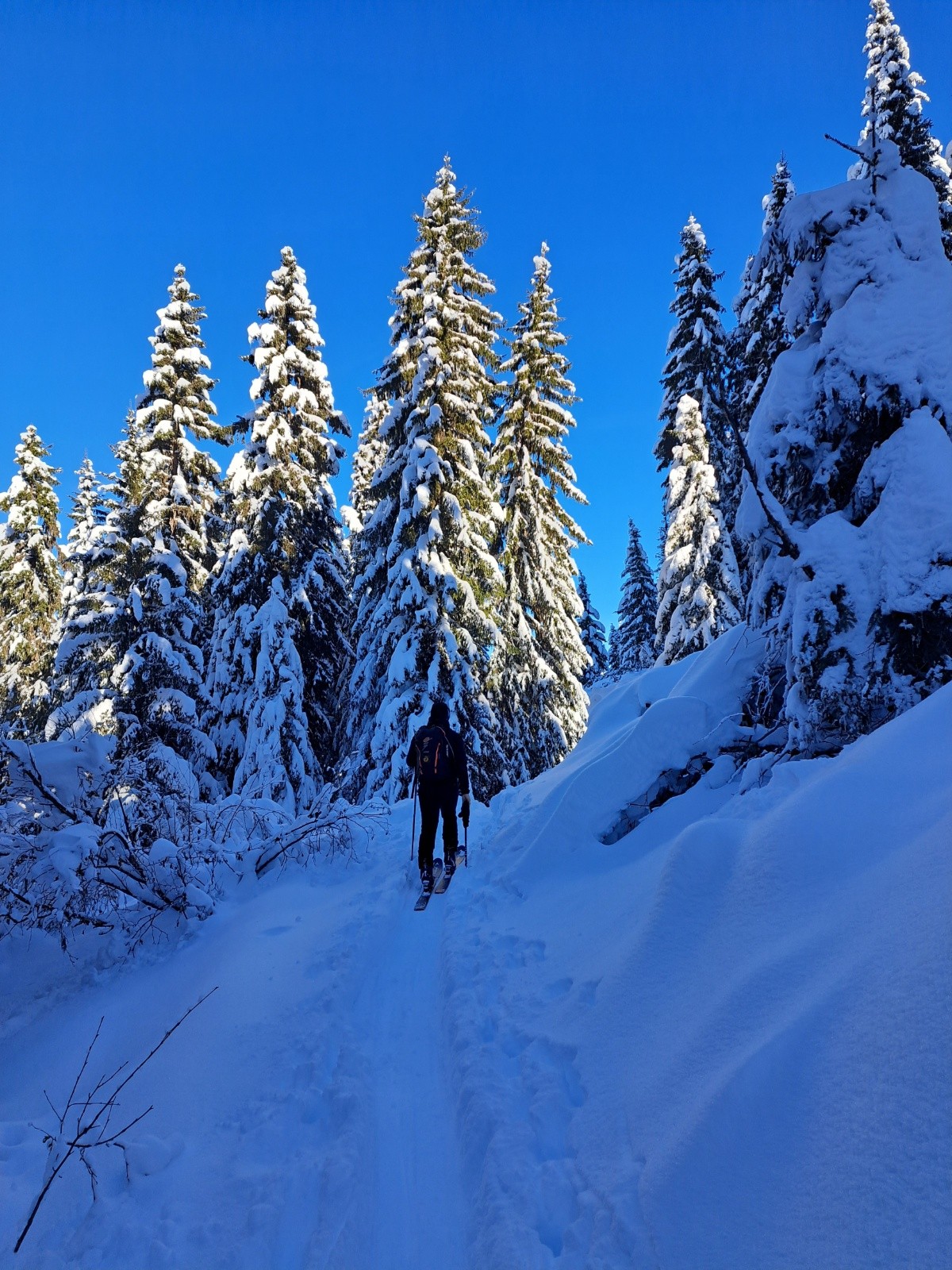 Conditions pour le ski : très bon, pas de touchette hormis les gros talus. Neige froide et poudreuse