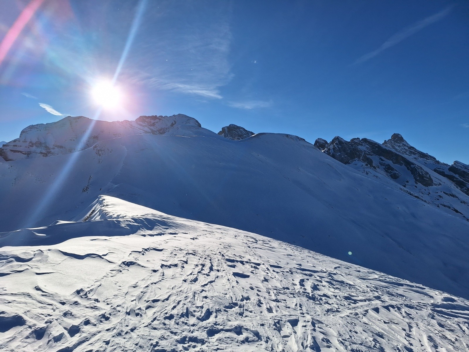 Repeautage sur le chemin de Méry et je repars. Petite discussion sur les conditions avec les 3 skieurs à côté desquels je me suis garé 😉 puis j'arrive pour la 2ème fois à la Pointe... déjà occupée! Je casse un peu le rêve du skieur présent en lui disant que la poudre légère a vécu mais j'ai préféré ne pas mentir 😅