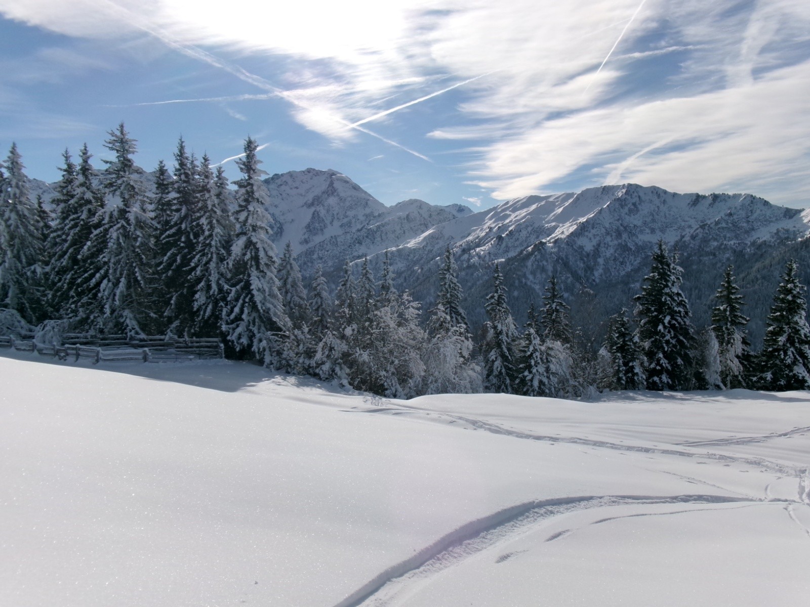 Conditions pour le ski : pas de sous-couche en forêt en dessous de 1500 à 1600m, mais une bonne épaisseur sur la route ou au dessus de 1600m. Neige restée froide et poudreuse tout le long de l'itinéraire