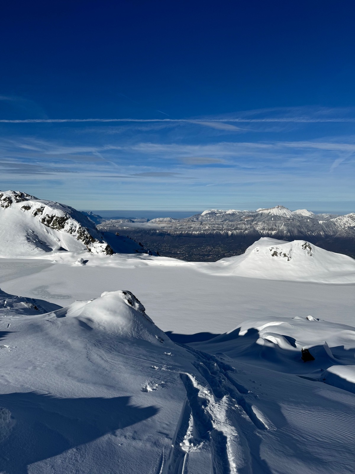 La trace est faite, certainement jusqu'a la croix ? Nous allons tracer direction la Grande Lance et il fait chaud dans cette face sud !!