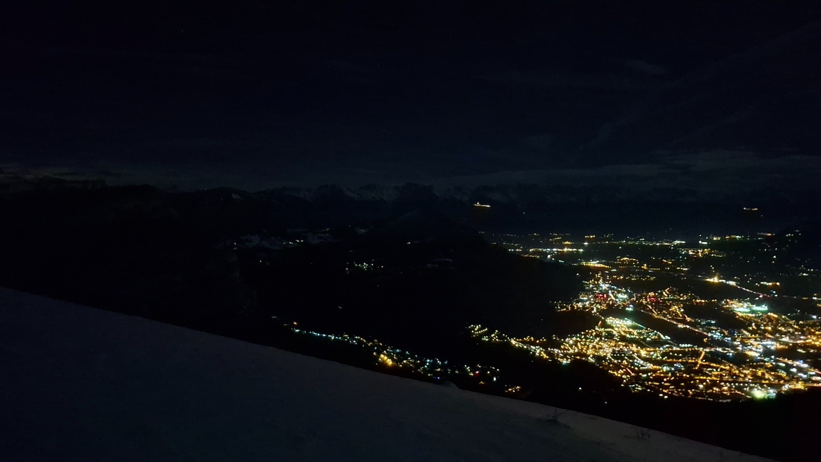 C'est beau une ville la nuit.. lorsque neige il y a vers Lovettaz, quel plaisir de monter sur ce chemin et dans ces prés qui dominent les lumières industrieuses.