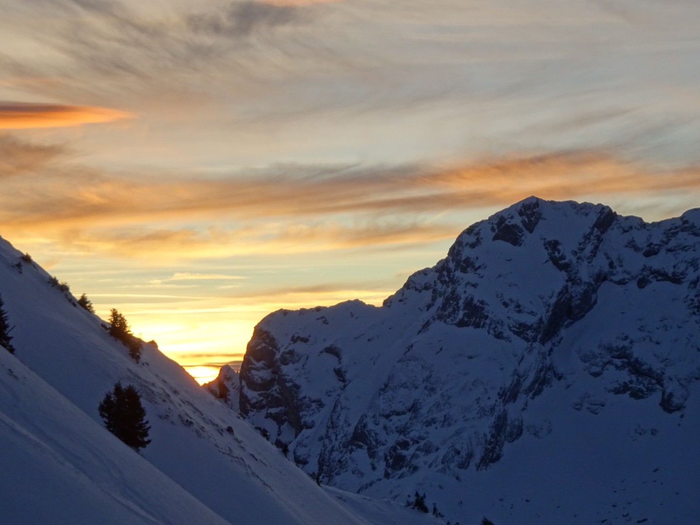 soufflée sur le haut puis pas mal du tout dans le couloir, déjà beaucoup de traces dans la voie principale, mais si on choisit une ligne raide il y a de la place…attention au chemin, avec tout les passages de petites pierres traîtres sont ressorties!