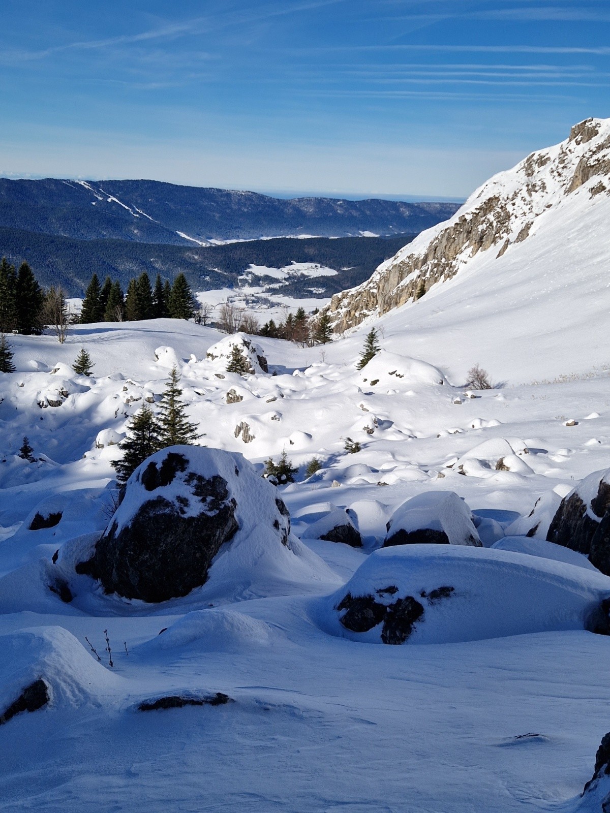 Bonne petite matinée en mode contemplation, dans le Vercors bien blanchi...les quantités de neige sont loin d'être exceptionnelles, relativement belles au dessus de 1500 m.