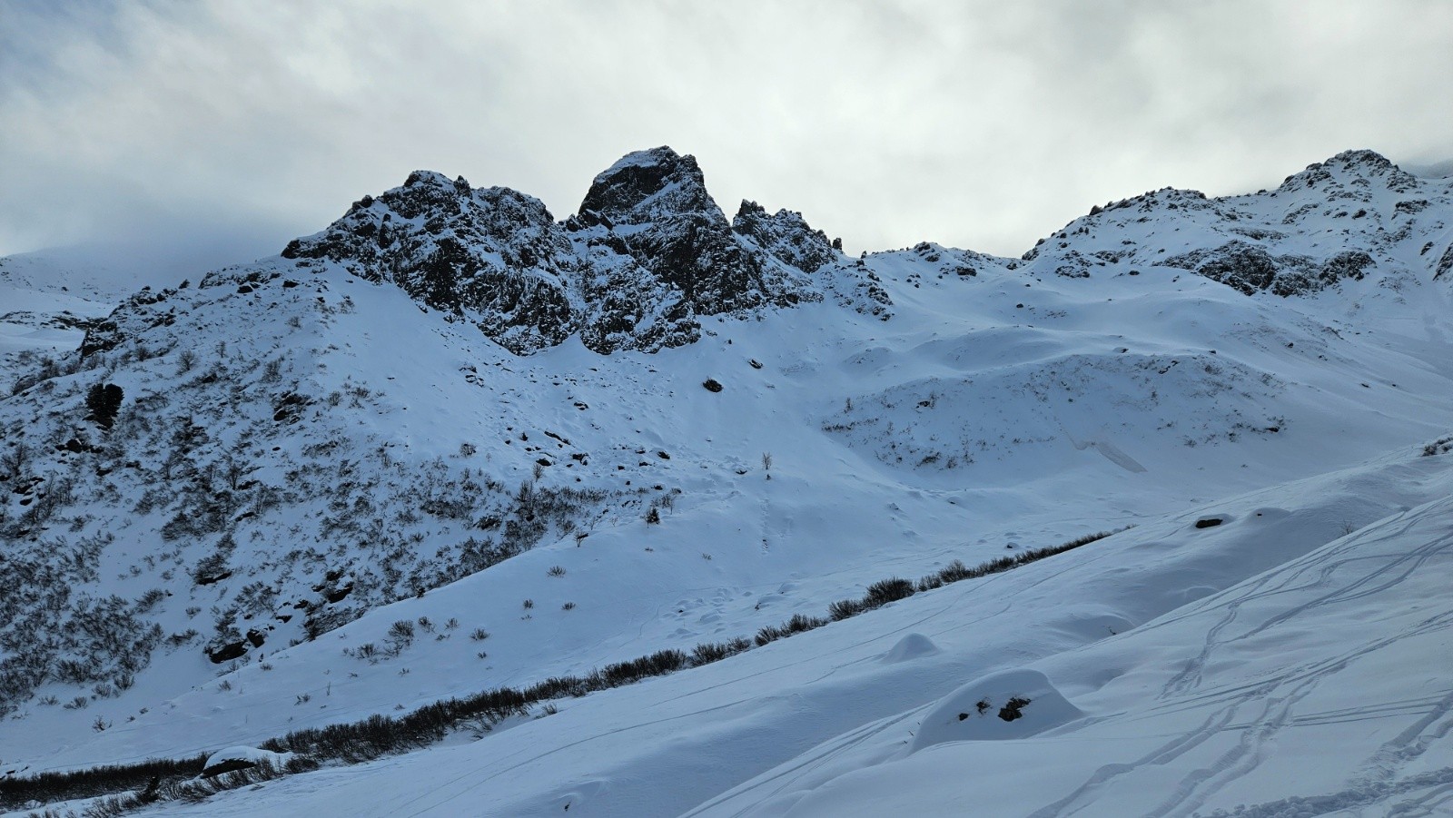 Vue le niveau de risque nous renonçons à monter à la Jasse et choisissons de rentrer à Pouta. Heureusement uns solitaire à tracé, merci pour la trace!