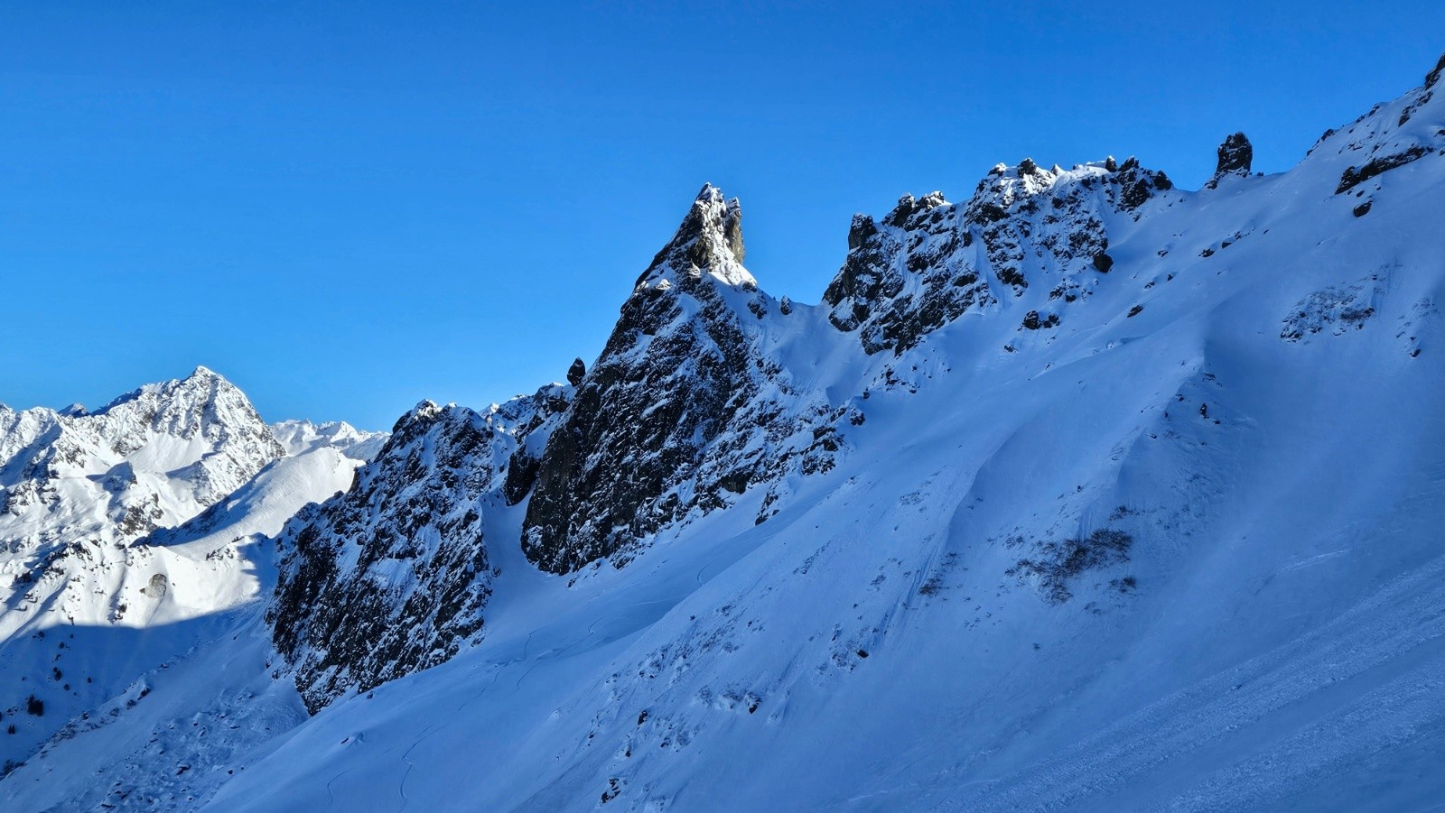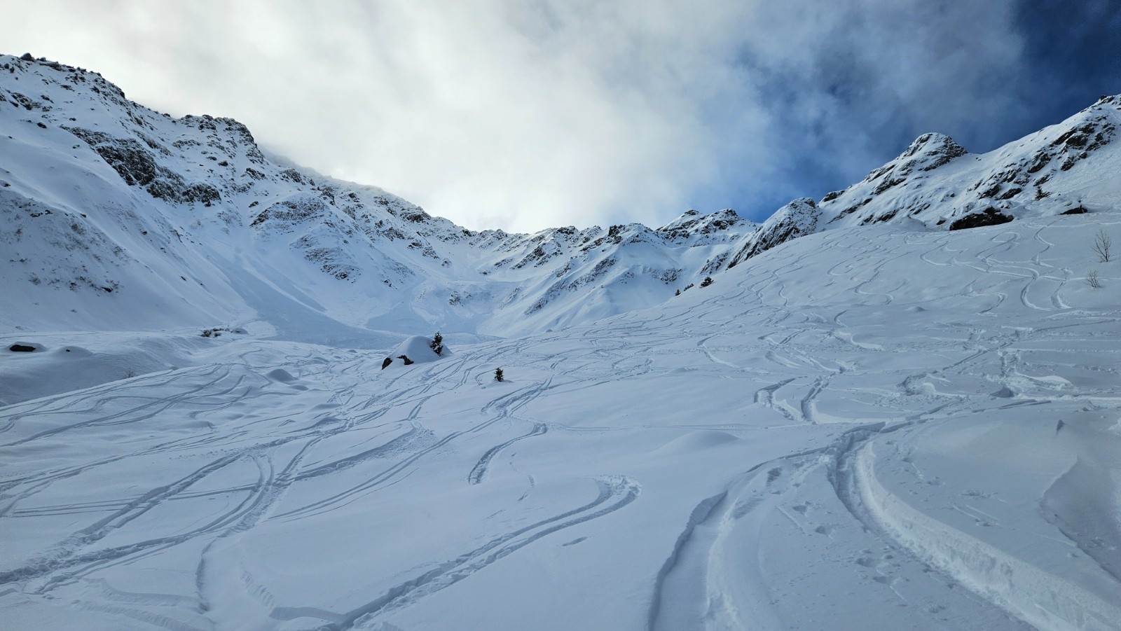 On voit des skieurs ouvrir et se faire bien plaisir dans le Col de l'Evêque. Peut être un peu osé avec les coulées pas loin...Mais c'est passé pour eux...