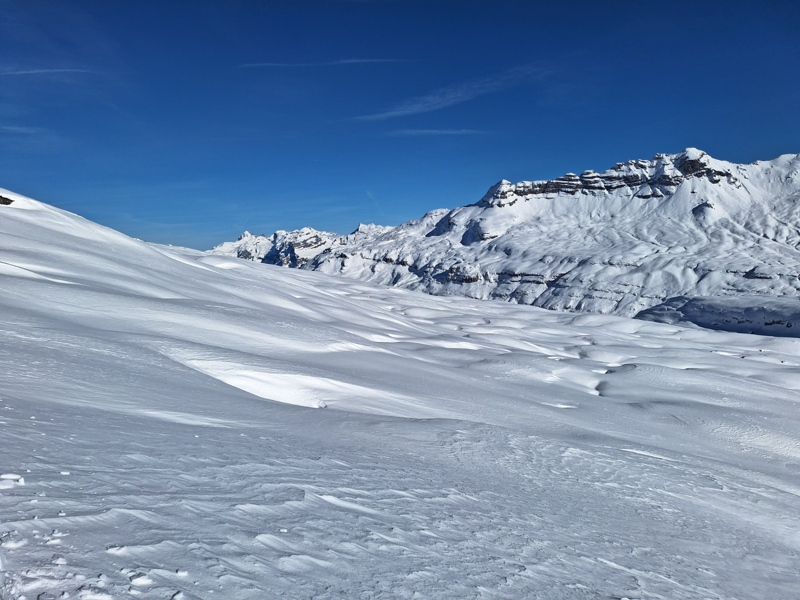 Dispo pour la journée et avec pour objectif de tester mes nouveaux skis, je vise un secteur classique de chez classique pour être sûr de ne pas gratter quelques cailloux. J'ai hésité jusqu'au dernier moment avec les Aravis mais avec le timing, l'absence d'infos et le risque de voir les combes soufflées après ce que j'ai vu à la Pointe du Château la veille, je reste sur mon plan "Flaine".