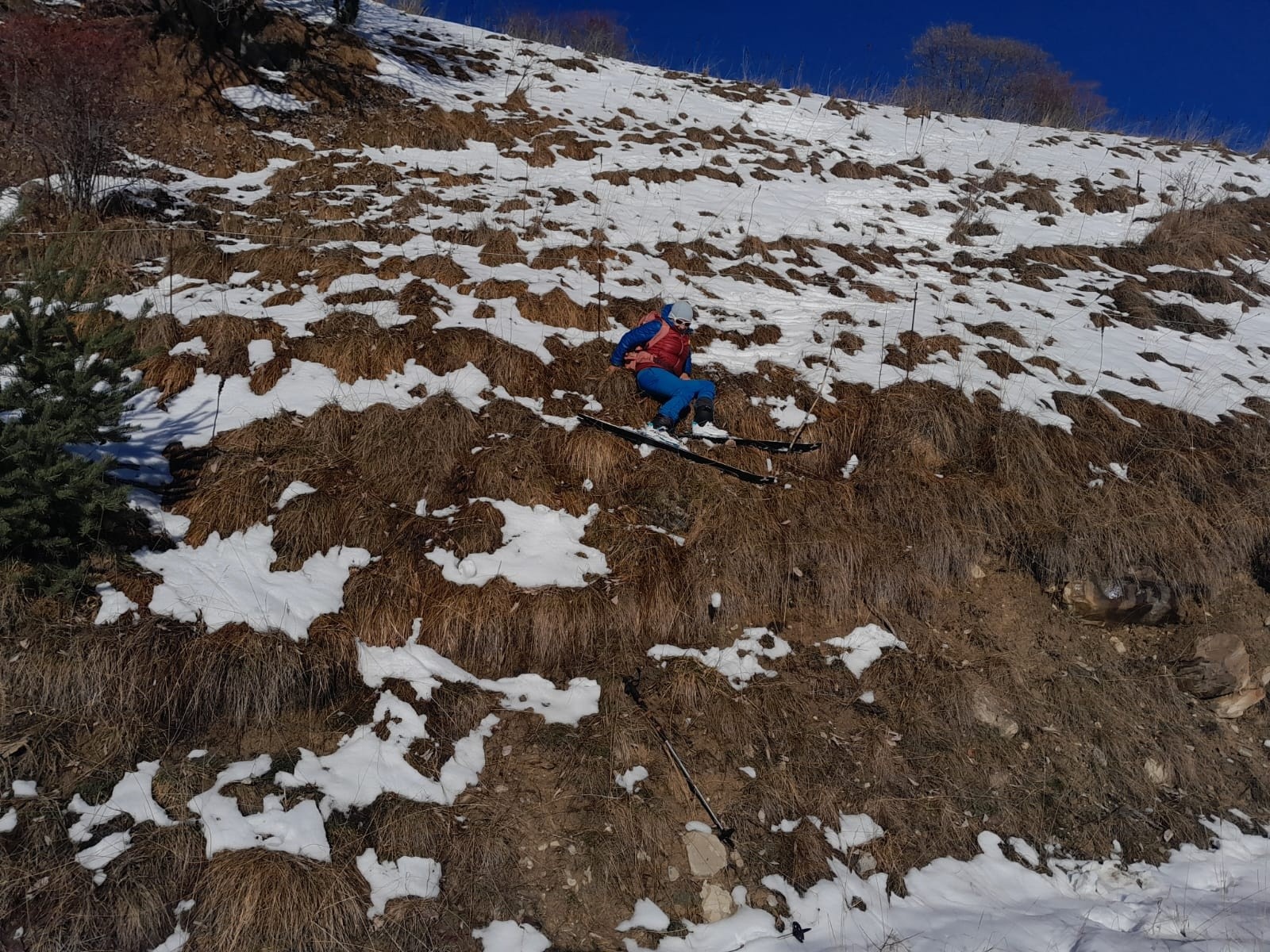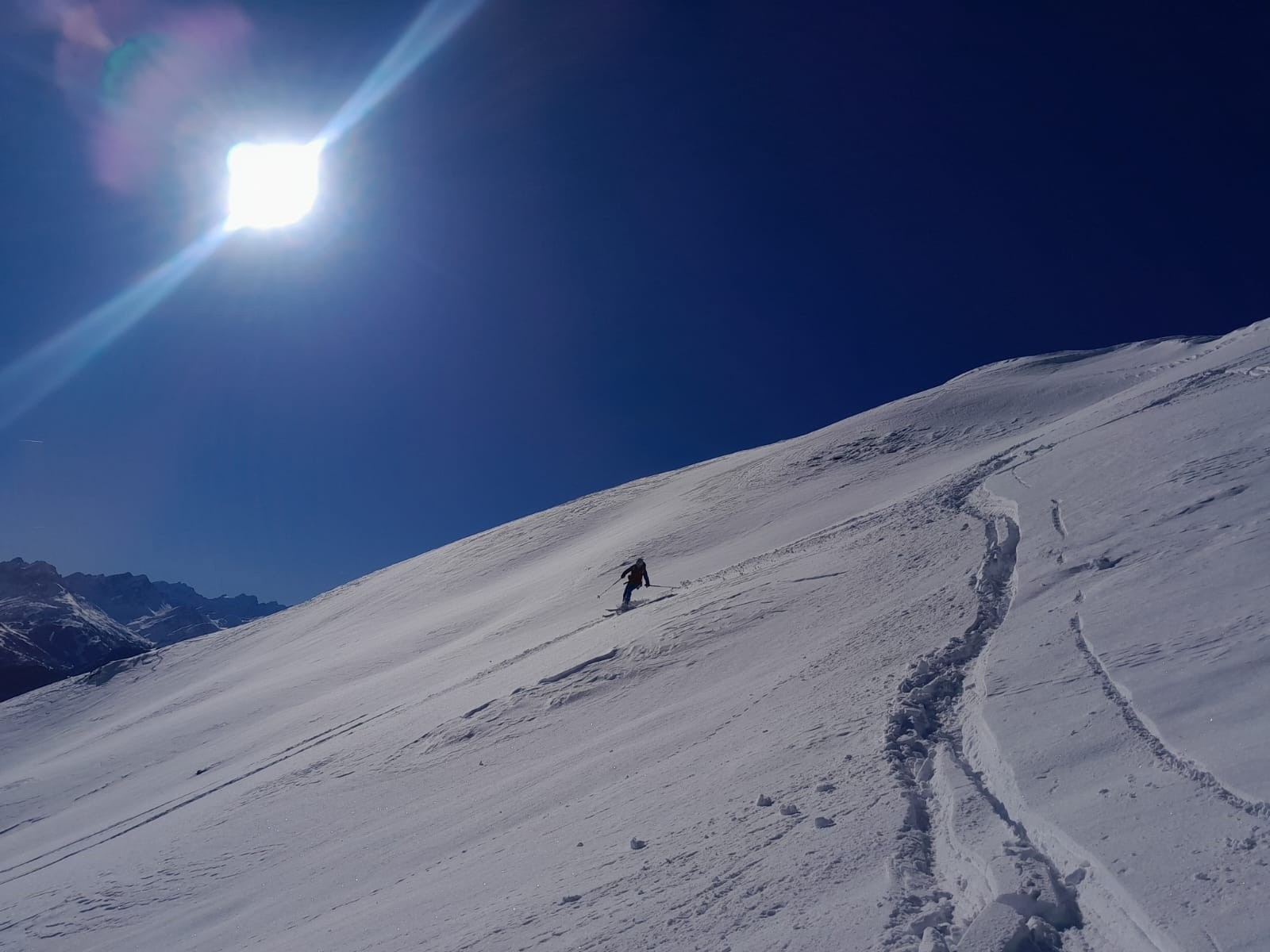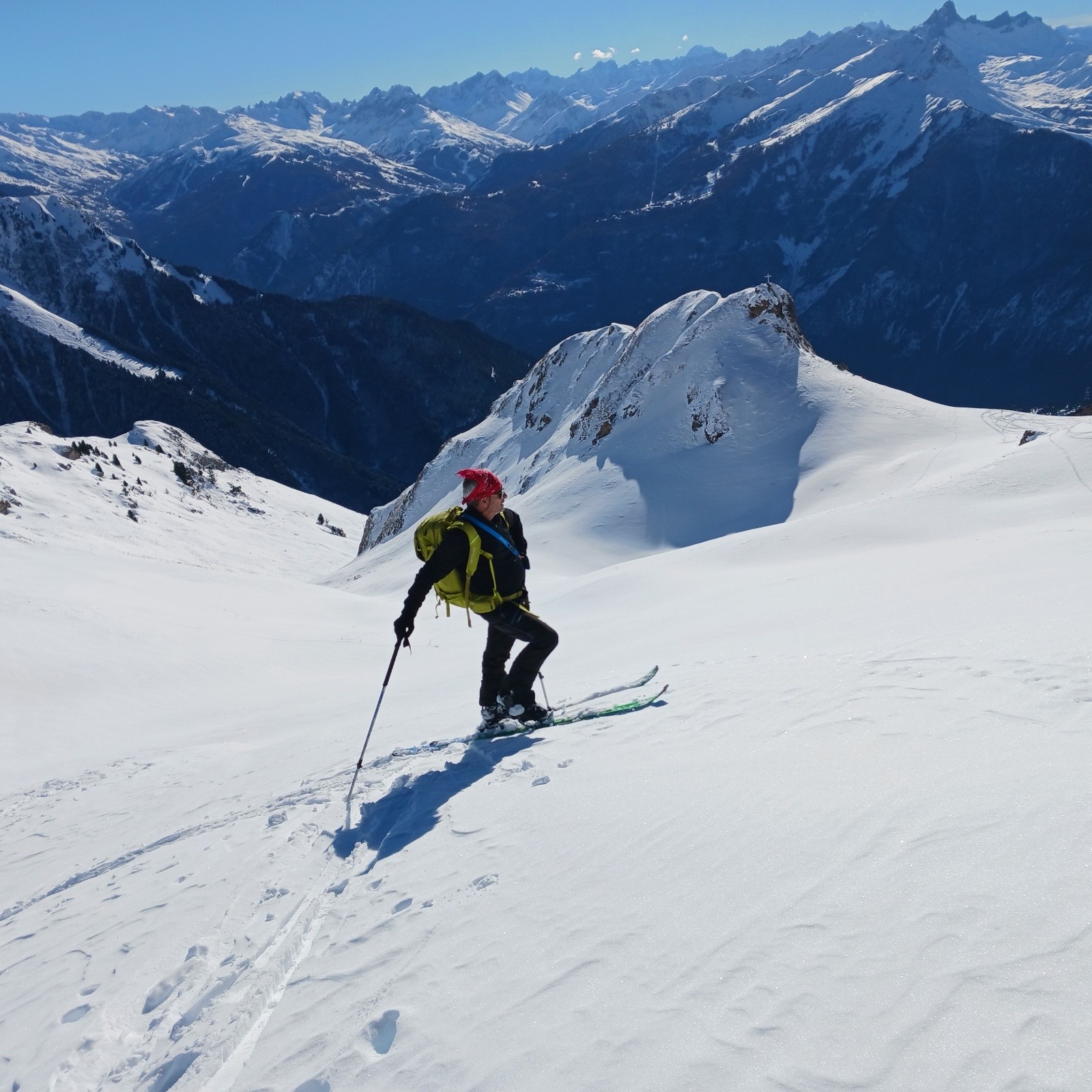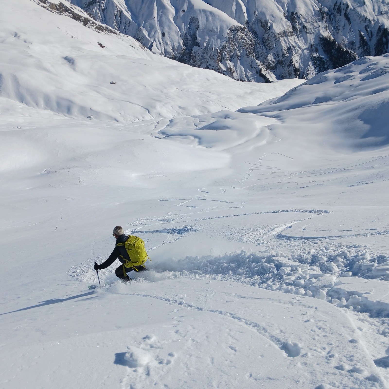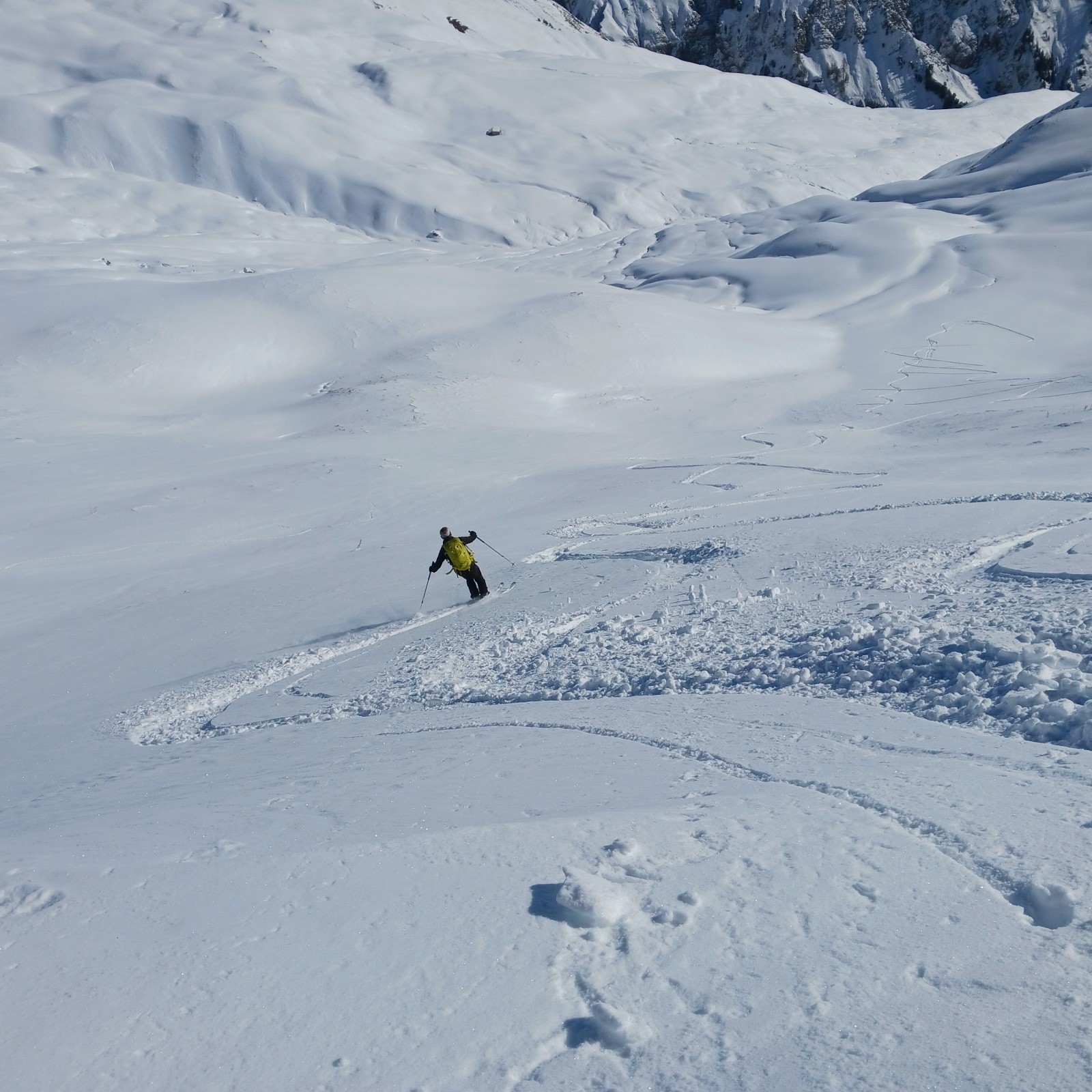 Descente Sud à 13h30 bien lourde, conditions presque printanières.