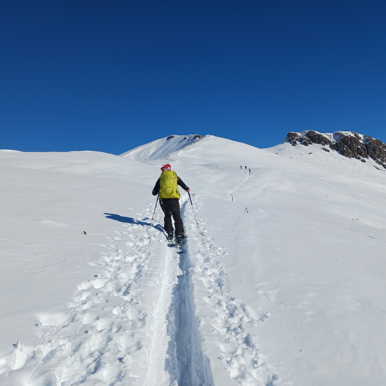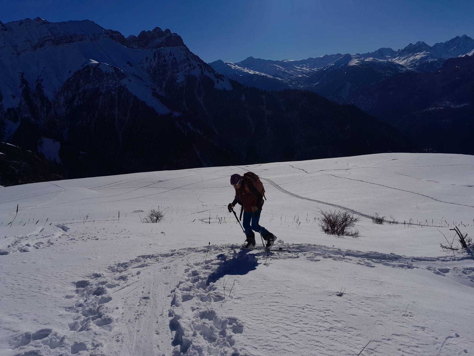 Après, il faut choisir: Nord on se pèle et on garde la poudreuse. Sud on sort les tee-shirts et on a la soupe. Ben aujourd'hui c'était plein soleil, montée agréable, mais plutôt raté pour les prairies poudreuses.