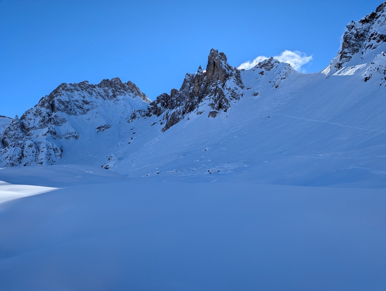 Conditions nivo et activité avalancheuse : coulée jusqu'a la terre sur le replat avant la bifurcation entre fenêtre en cicle