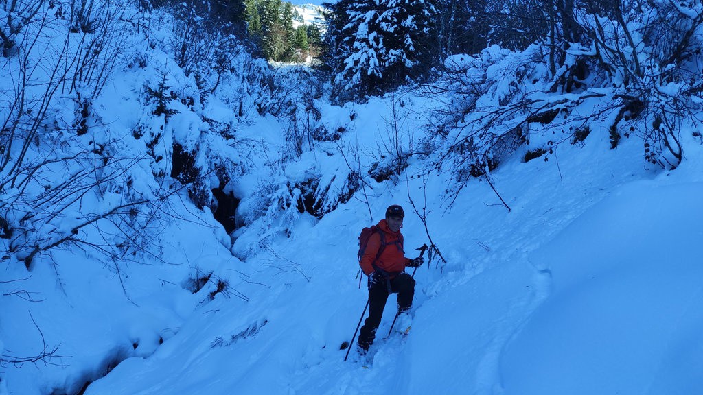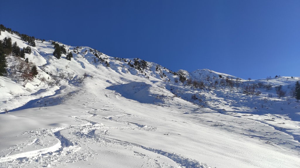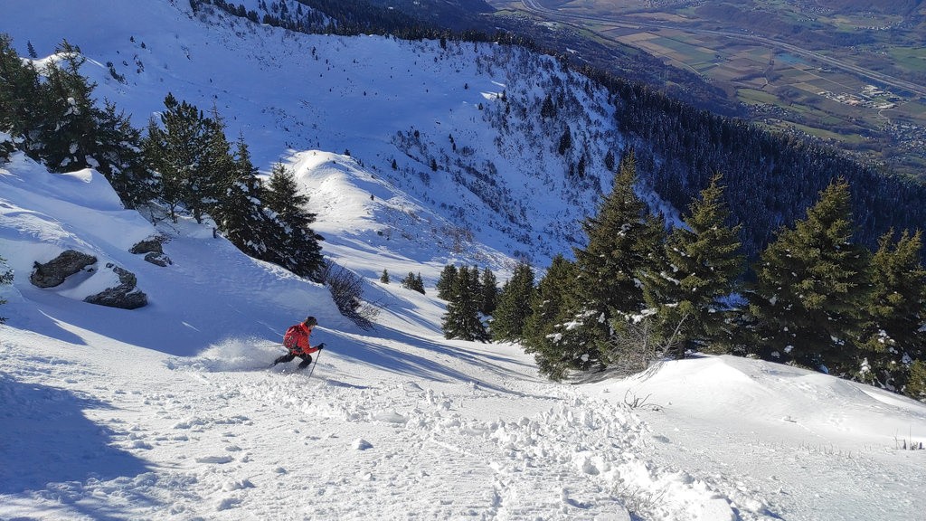 Conditions pour le ski : excellente neige en versant nord, ça skie bien jusqu'à 1300 m, plus laborieusement en dessous
