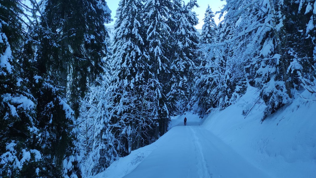 Conditions d'accès/altitude du parking : neige dès 850, bien présente au dessus de 900 m. On s'est arrêté à 1100 m avec 4 pneus neige.