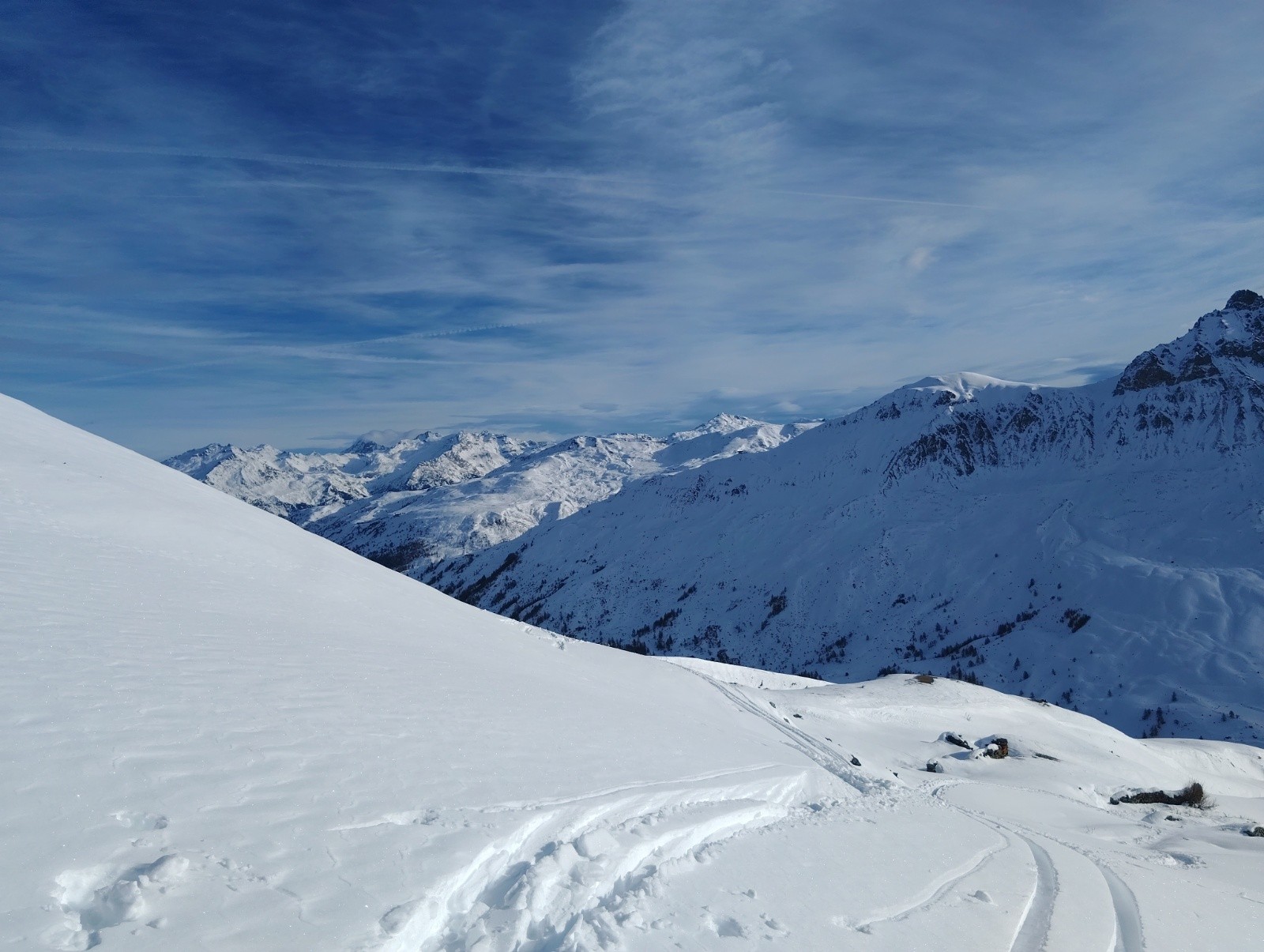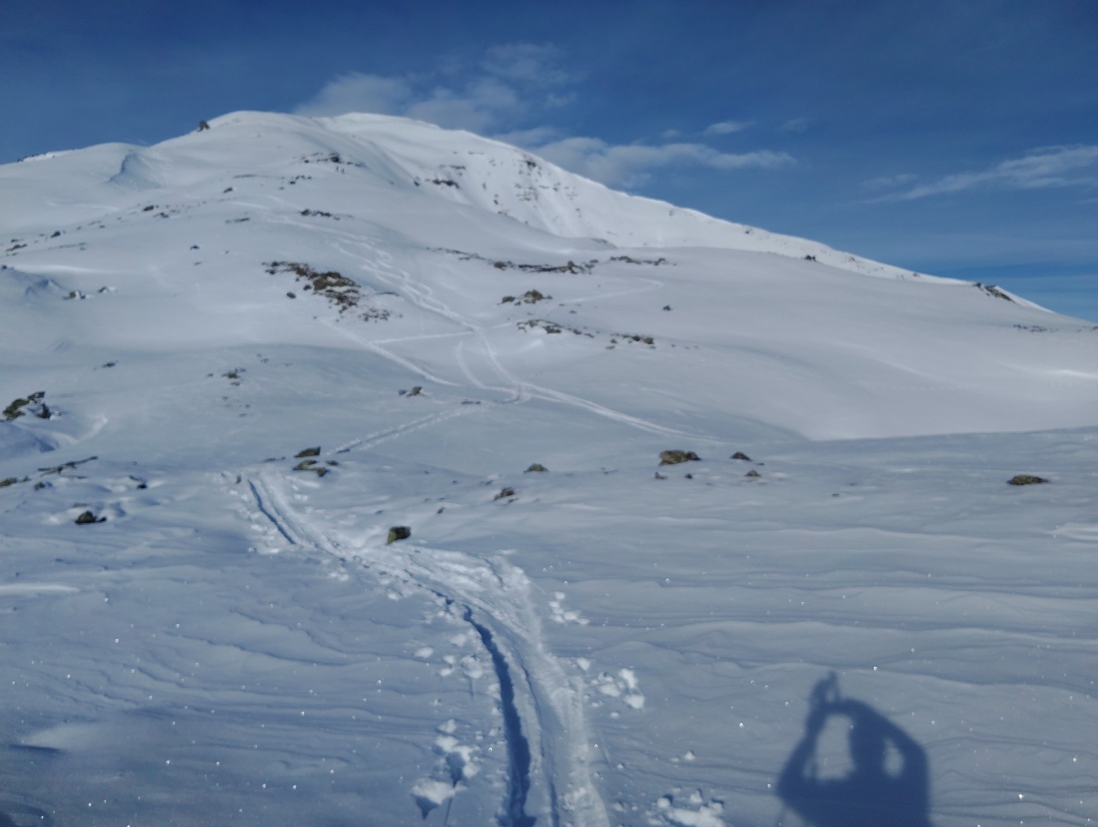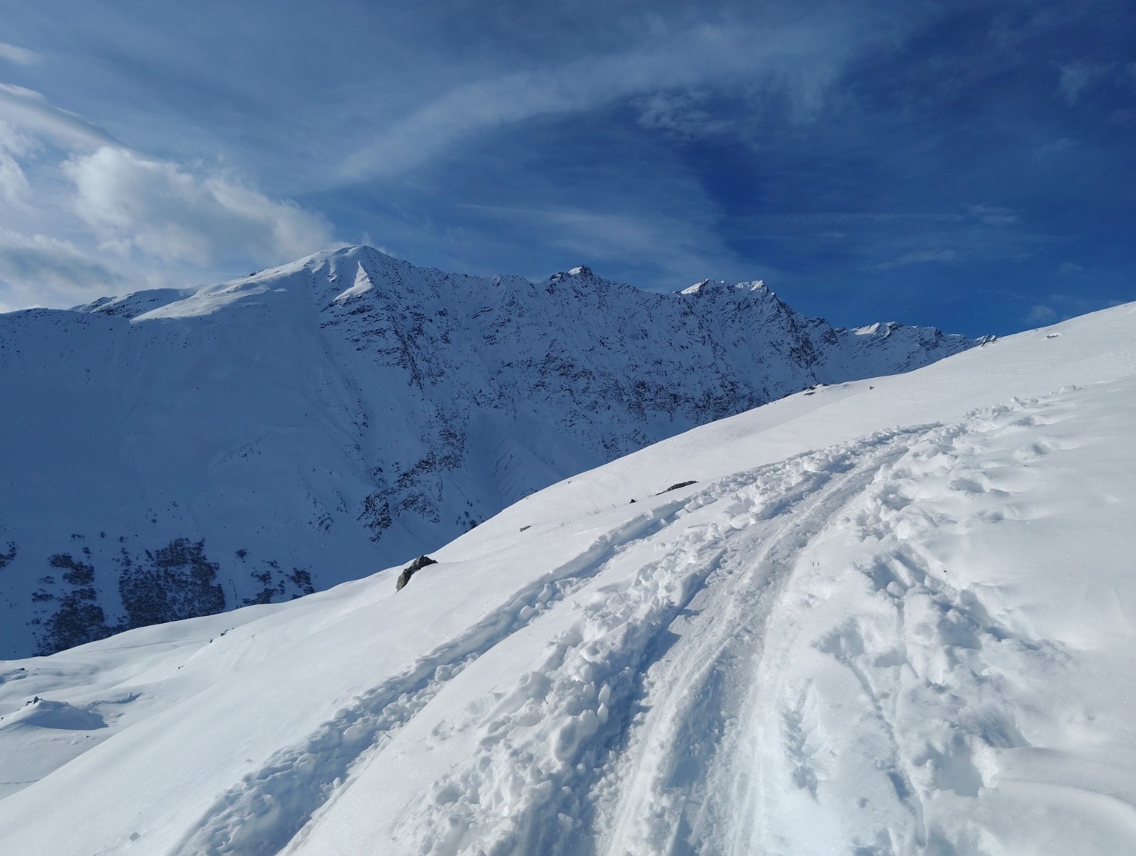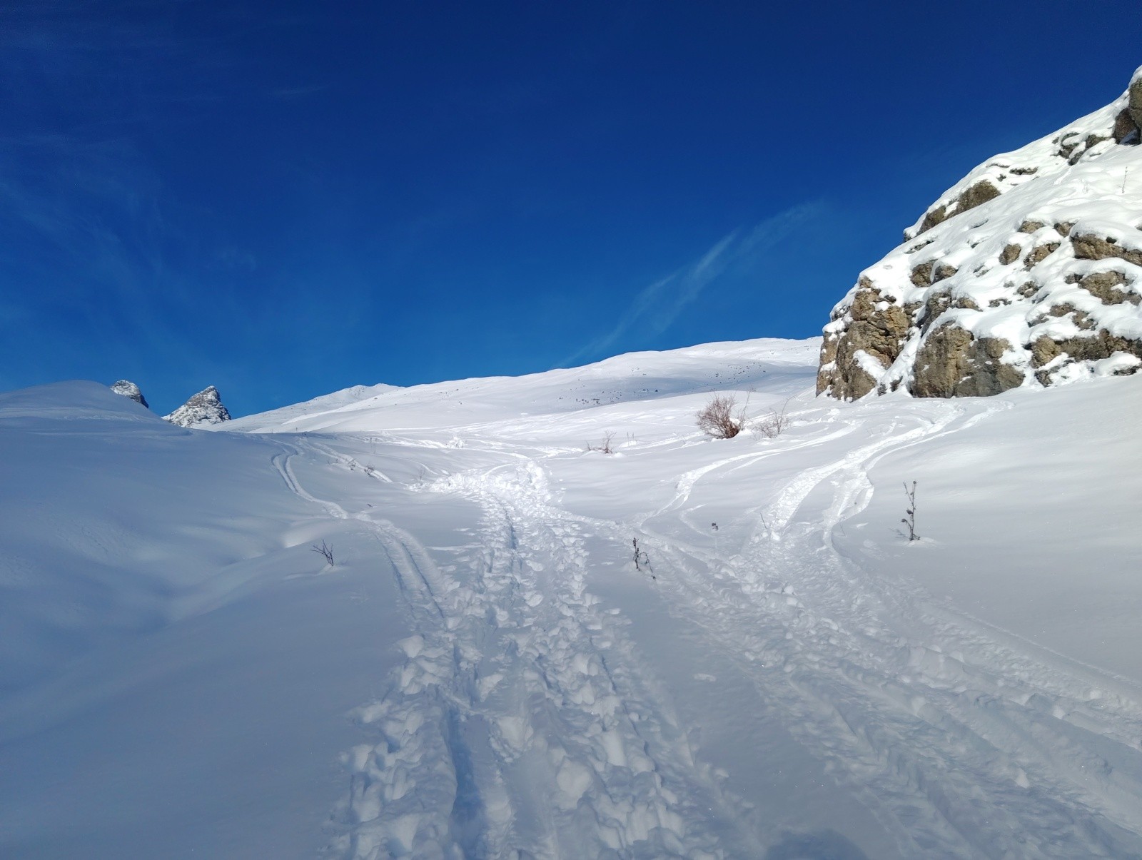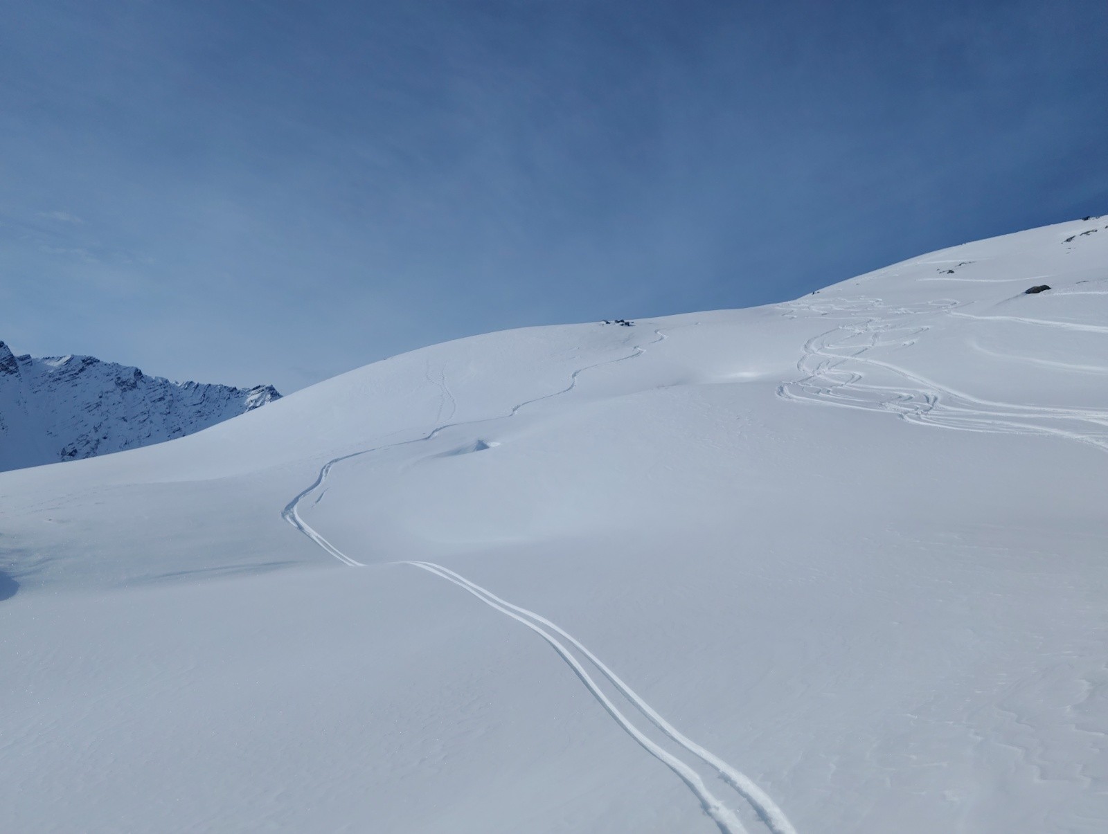 La descente sera bonne, il suffit de viser les combes pas exposées au rayons du soleil, et la poudreuse y est très bonne.