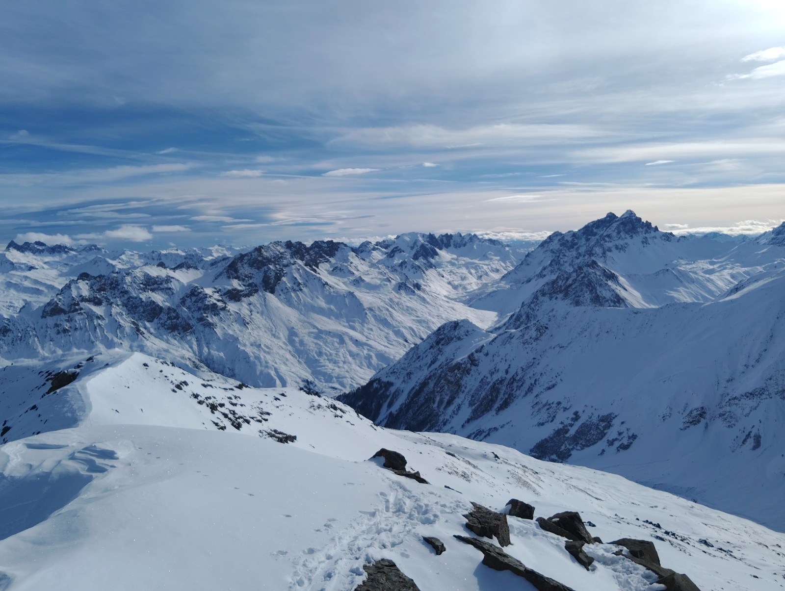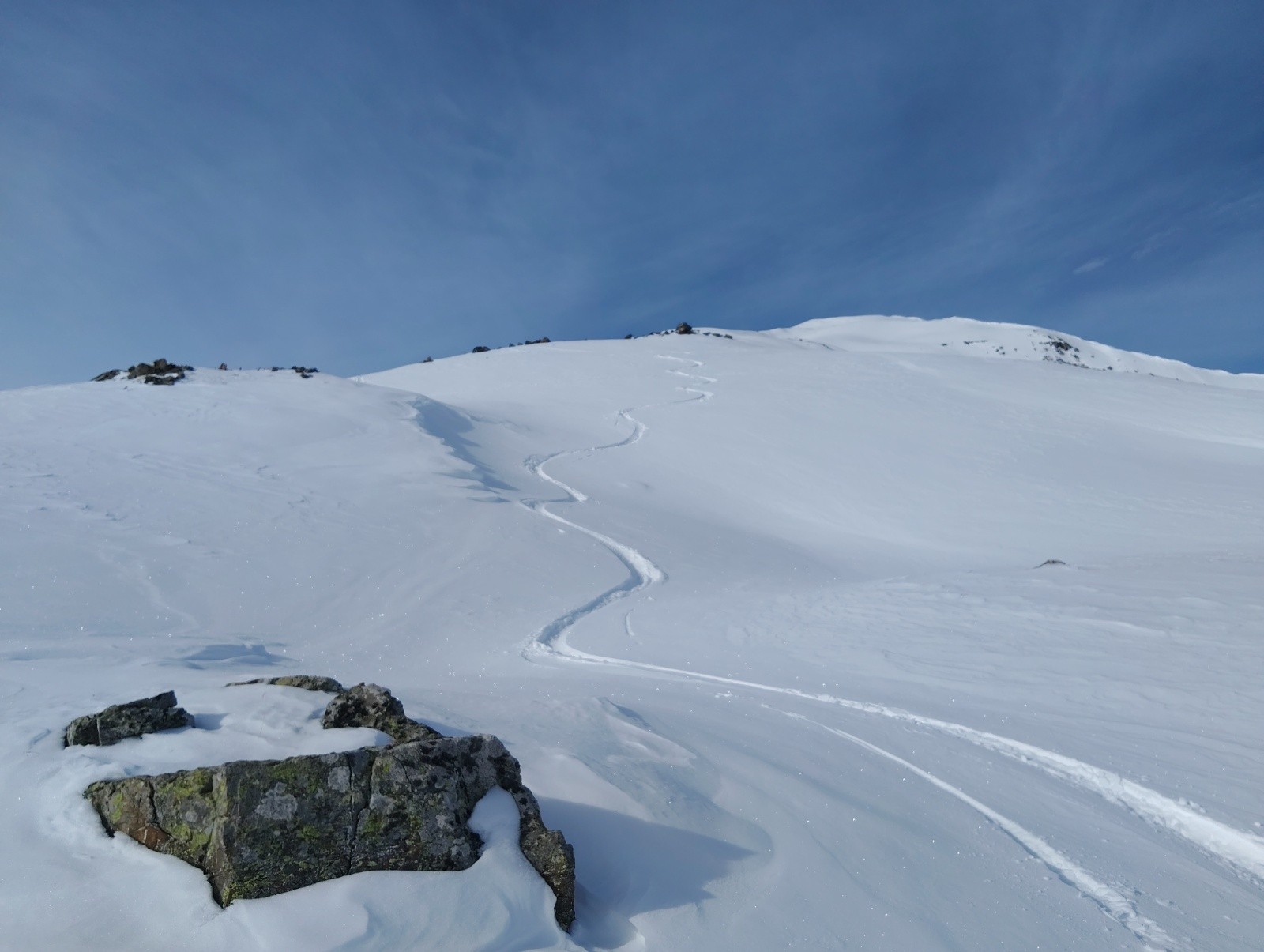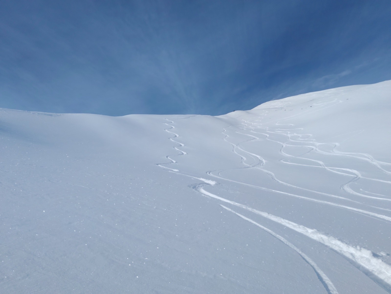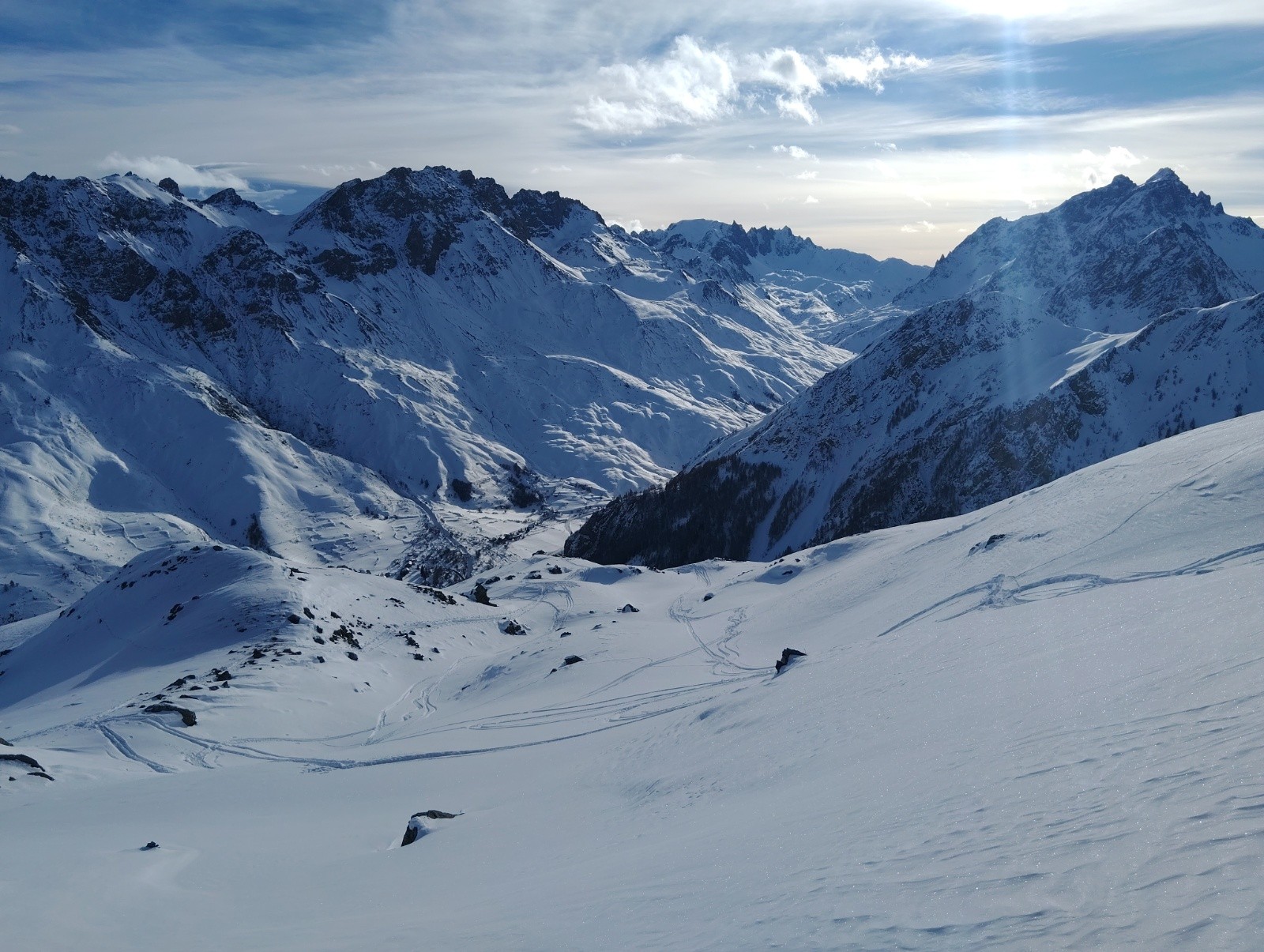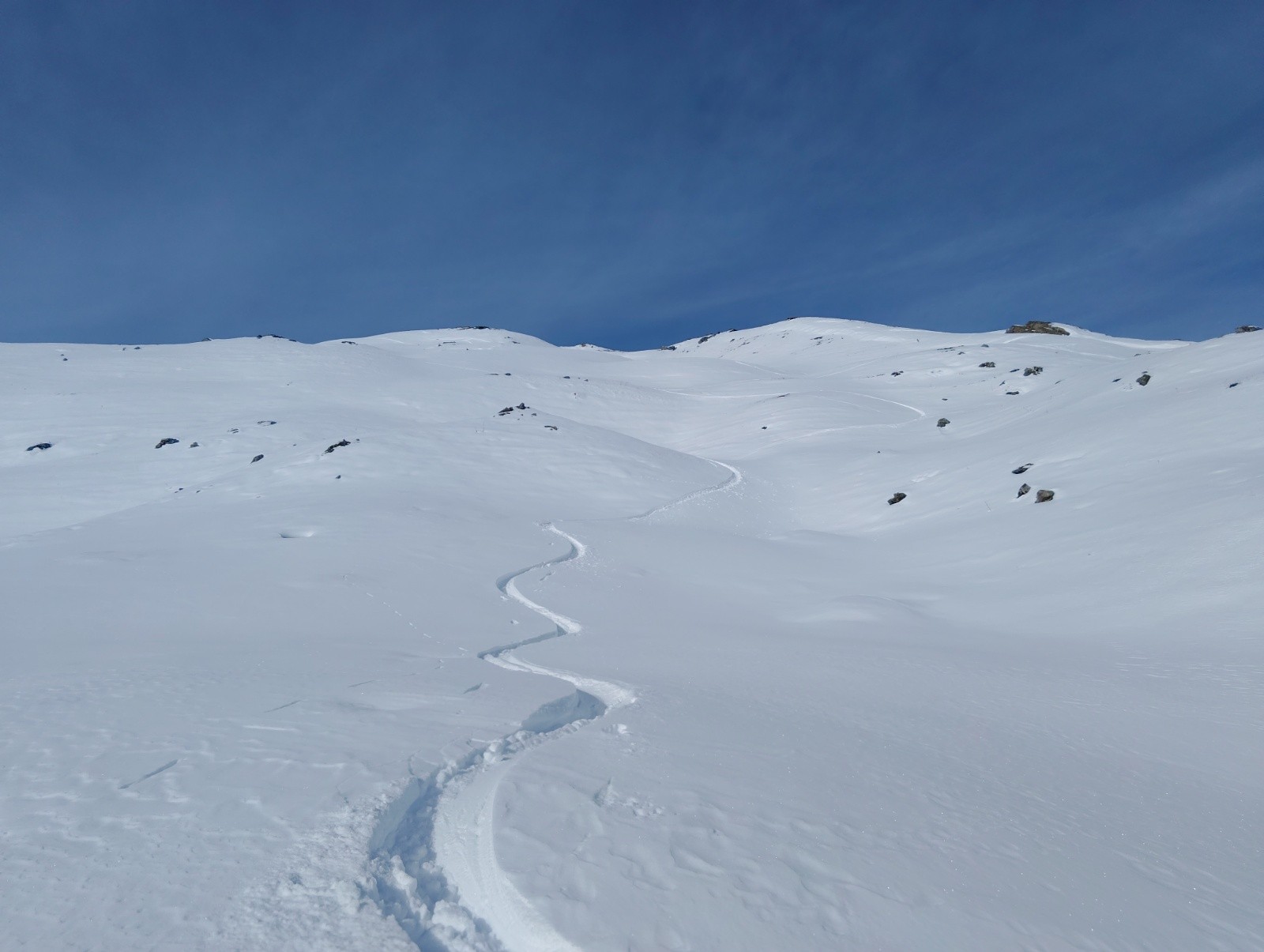 La descente sera bonne, il suffit de viser les combes pas exposées au rayons du soleil, et la poudreuse y est très bonne.