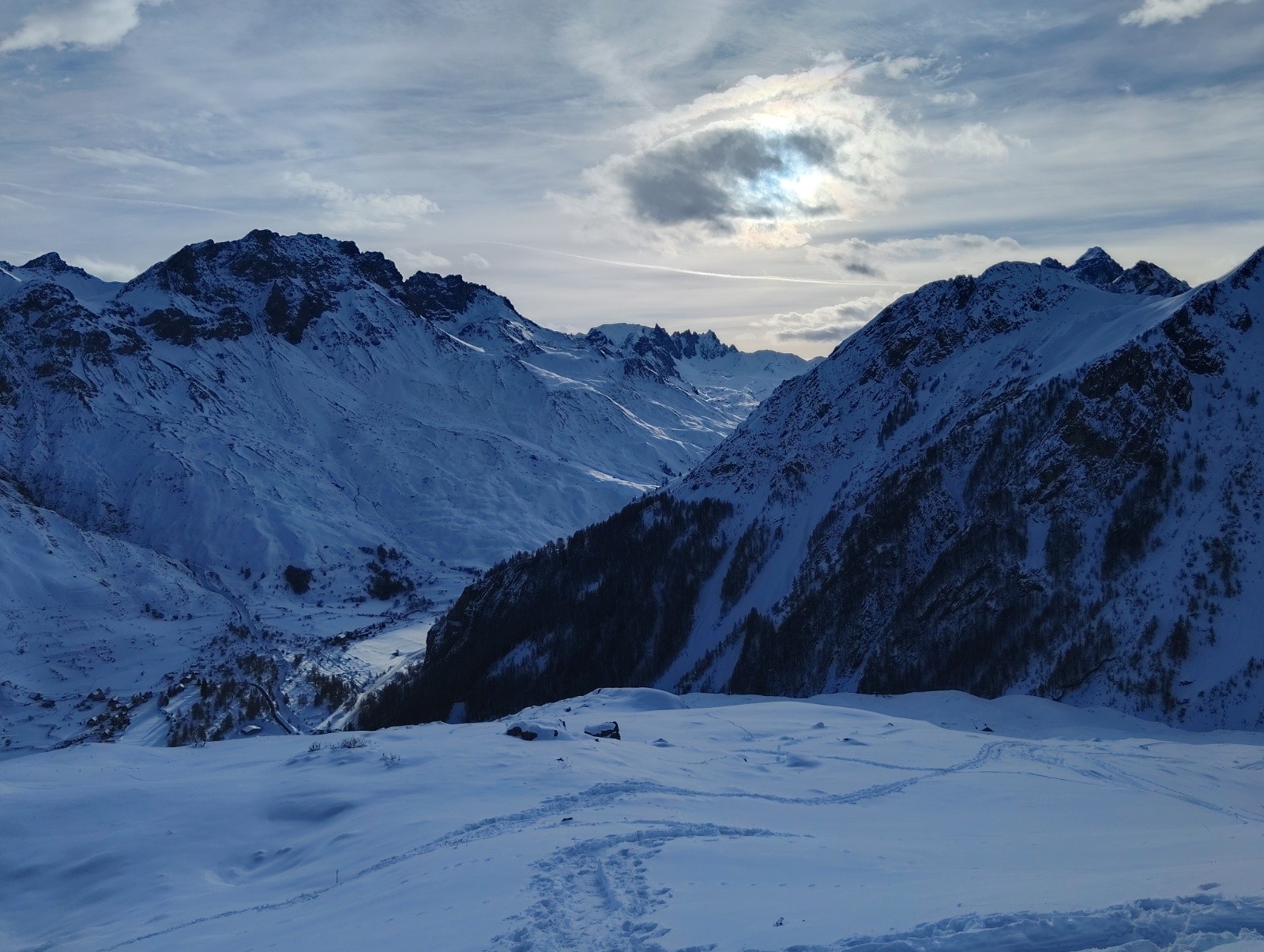Conditions d'accès/altitude du parking : route légèrement enneigée après Valloire, parking de bonnenuit 1670 m