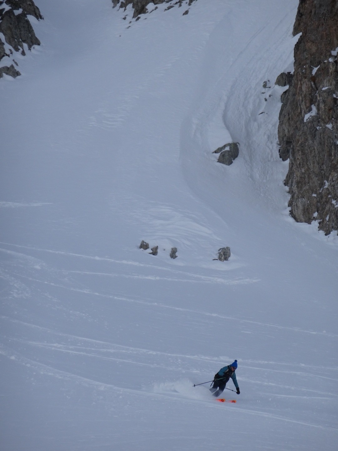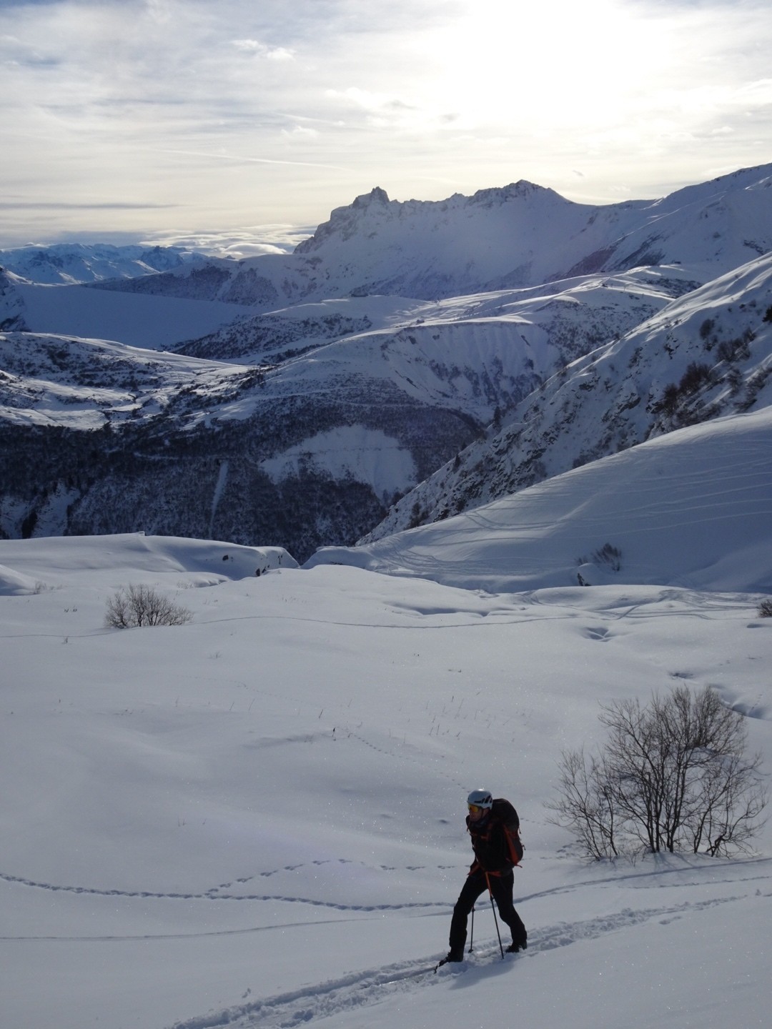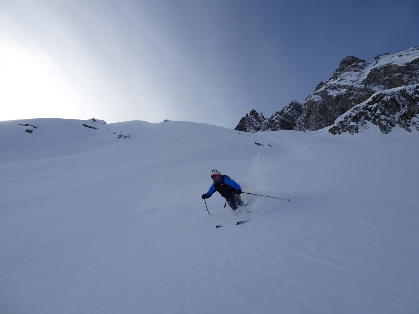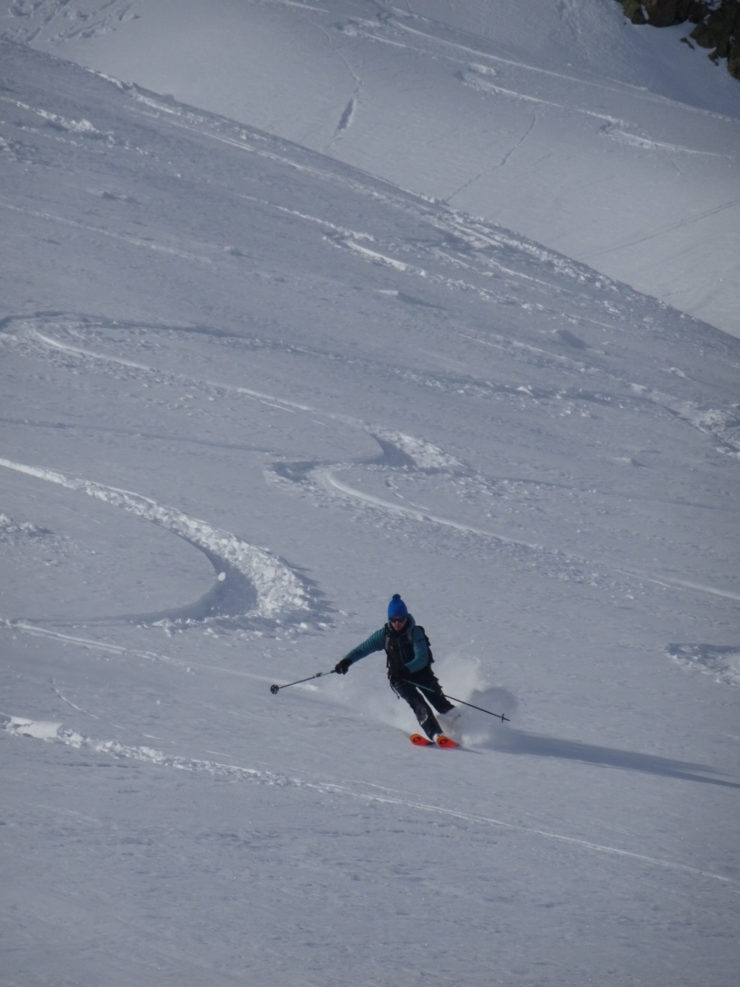 Conditions pour le ski : bonne neige dans l’ensemble, un poil travaillée par le vent et le soleil mais si on ski vite ça dérange pas… sur le bas la croûte était juste revenu au soleil, donc tout bon!