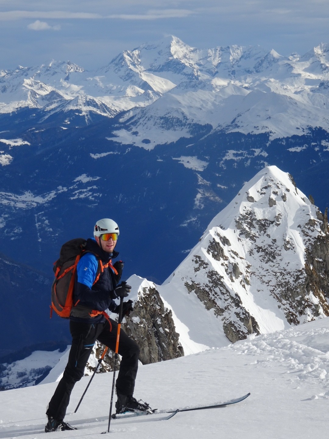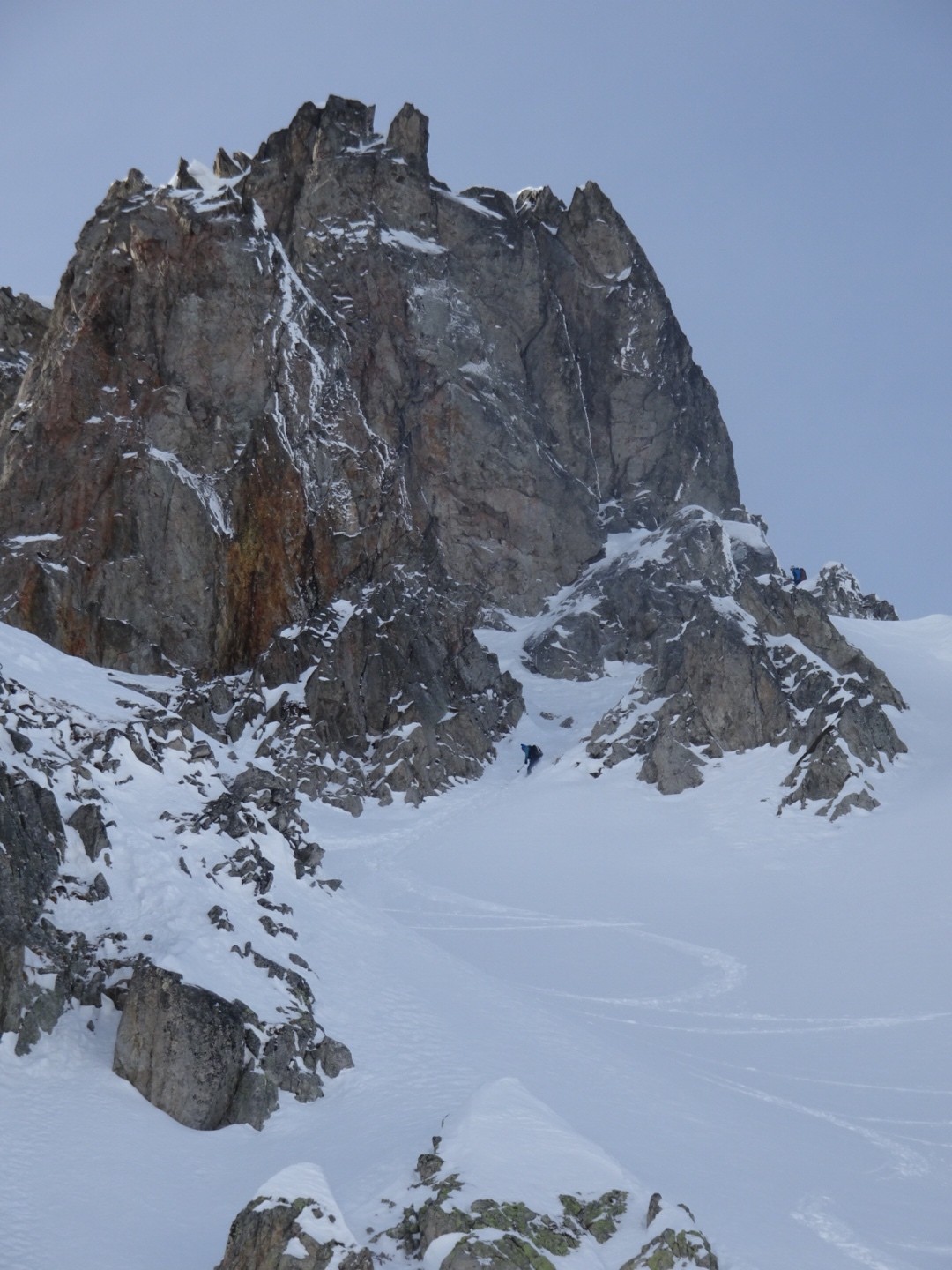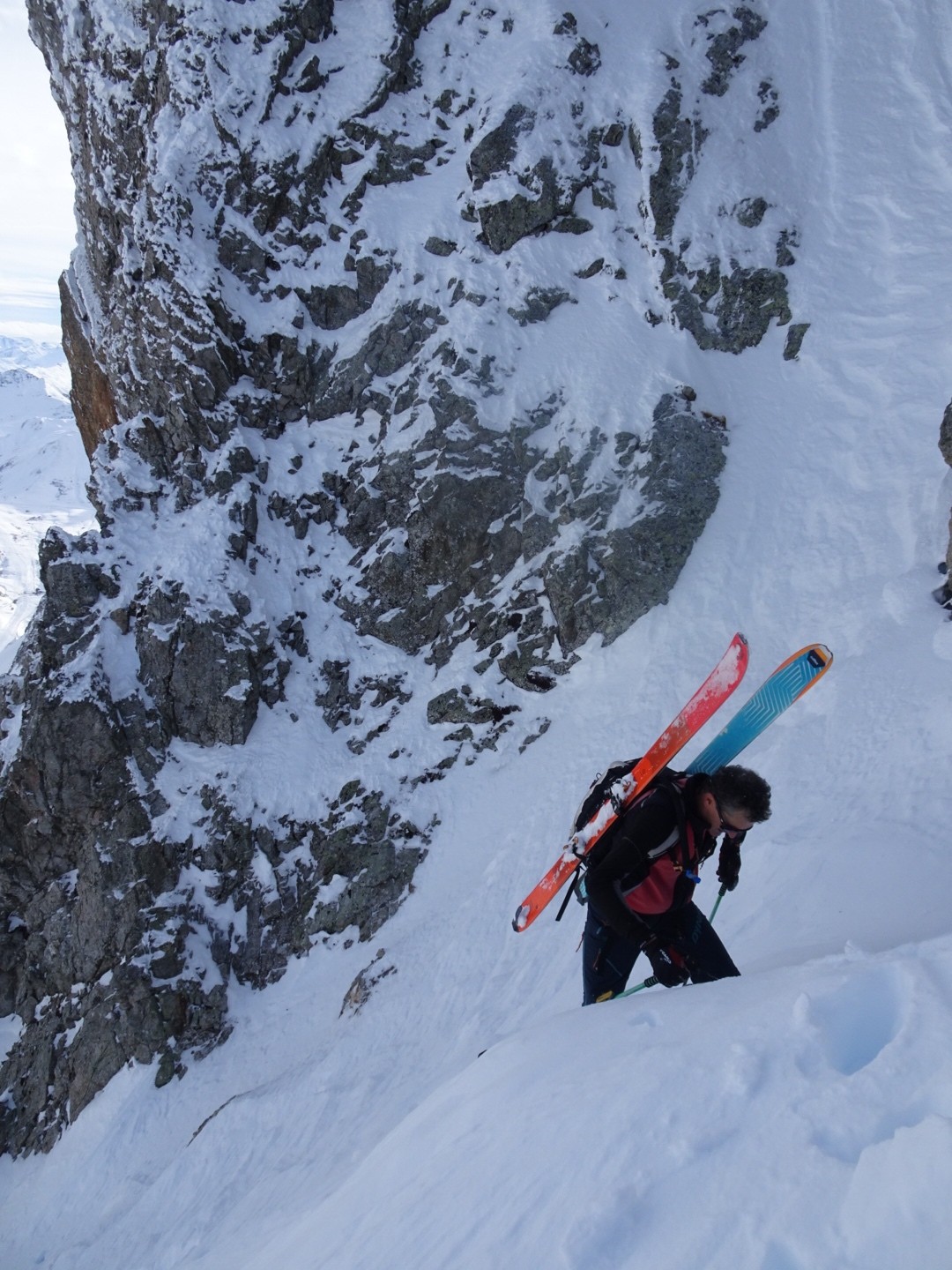 Conditions pour le ski : bonne neige dans l’ensemble, un poil travaillée par le vent et le soleil mais si on ski vite ça dérange pas… sur le bas la croûte était juste revenu au soleil, donc tout bon!