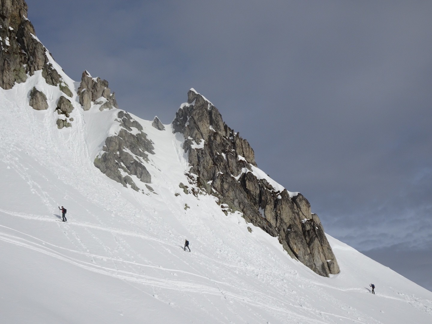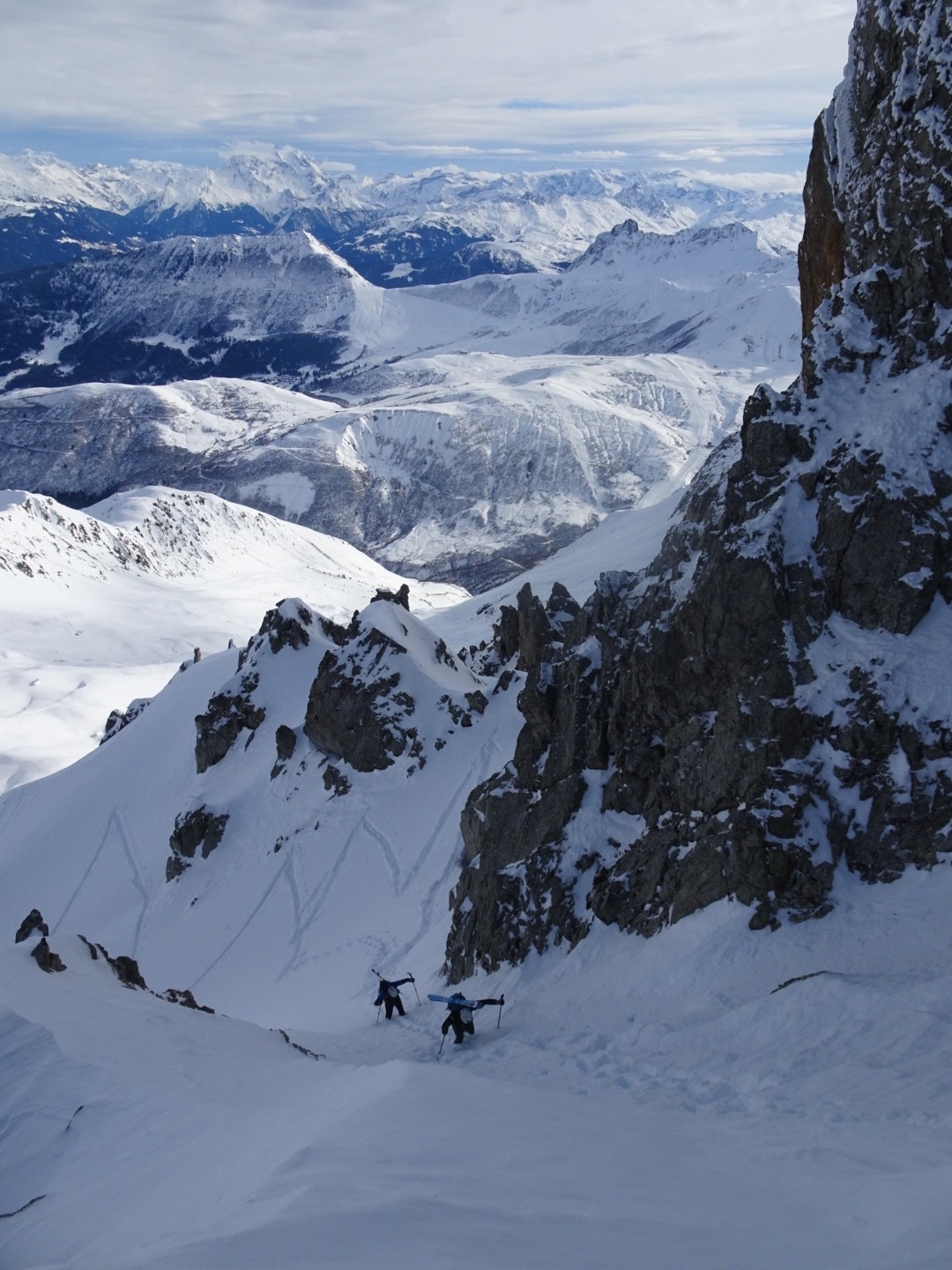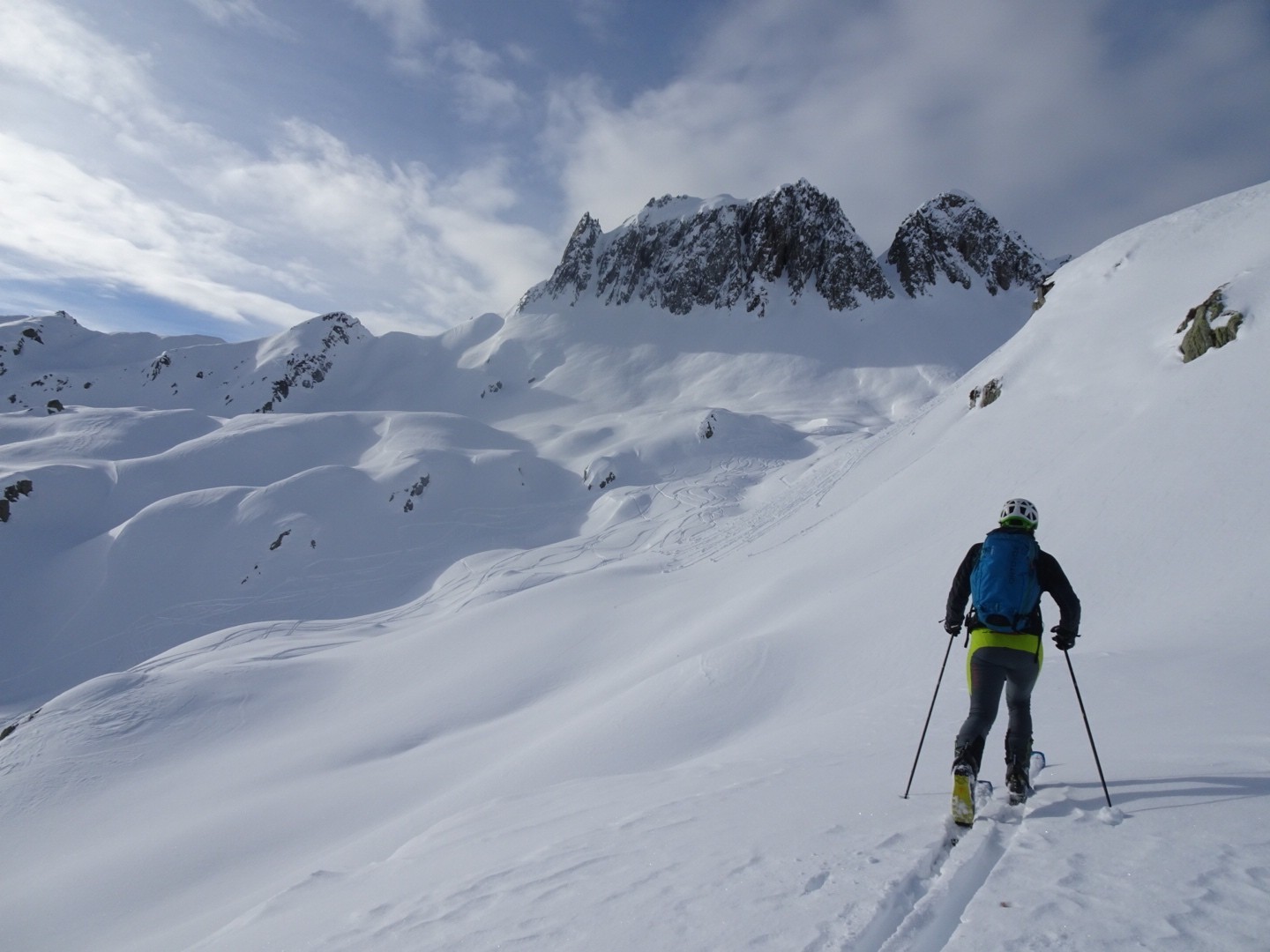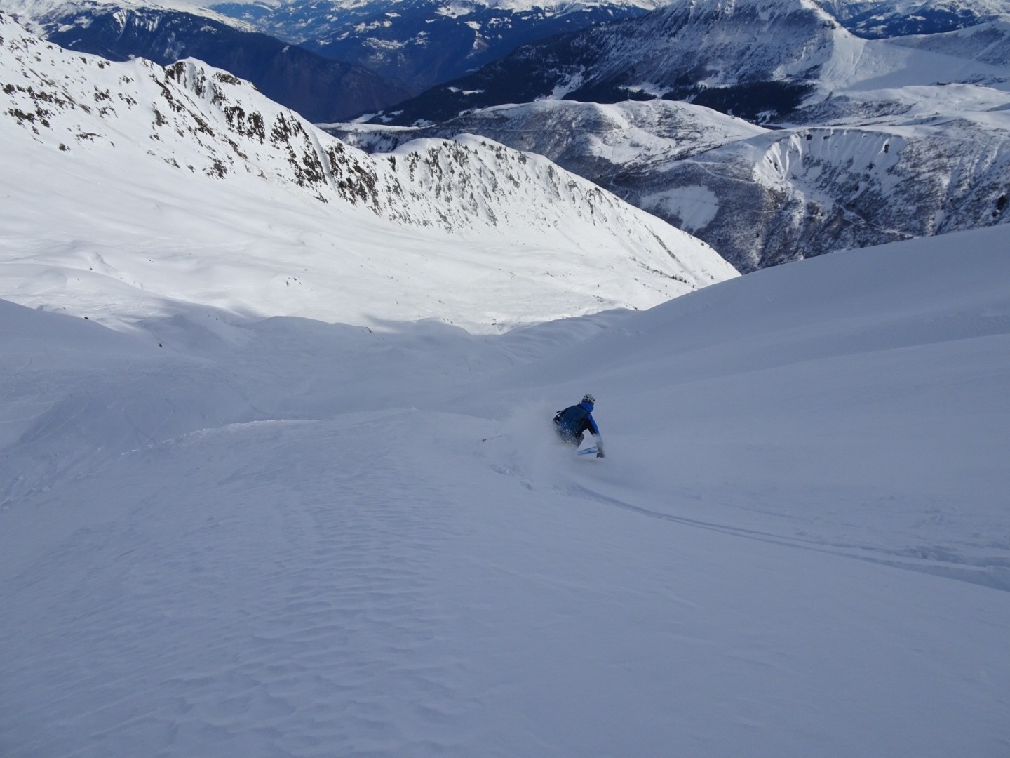 Conditions pour le ski : bonne neige dans l’ensemble, un poil travaillée par le vent et le soleil mais si on ski vite ça dérange pas… sur le bas la croûte était juste revenu au soleil, donc tout bon!