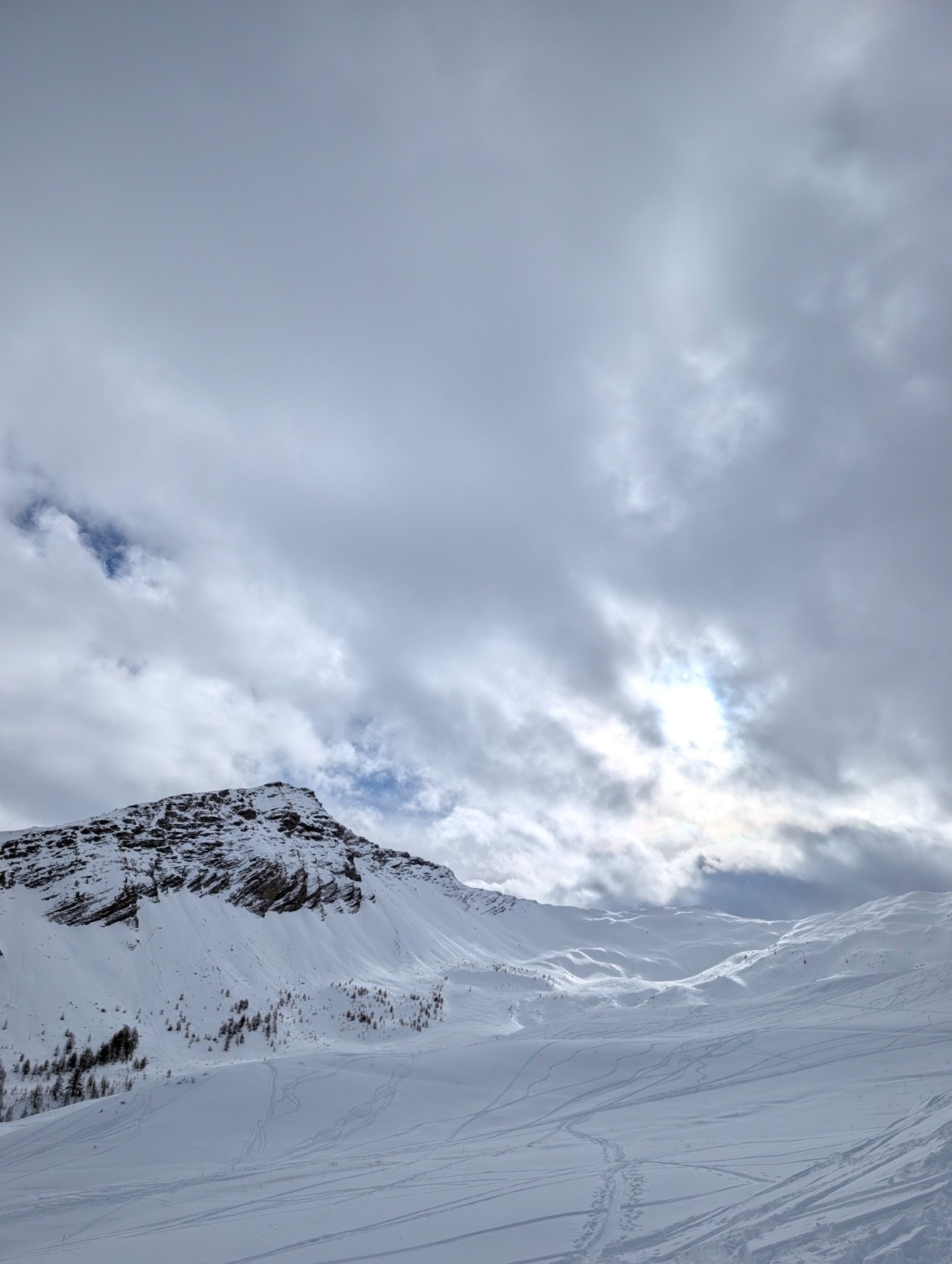 Conditions pour le ski : bonne sur le haut après la.foret donc au dessus de 2200 mais en dessous c'est de la neige lourde , travaillé et ça touche parfois