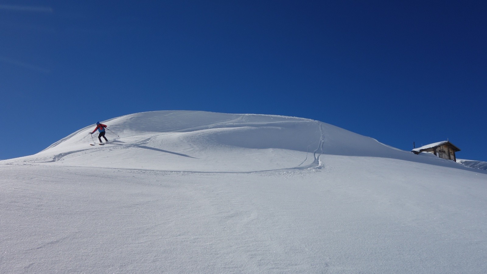 Conditions pour le ski : La quantité est présente mais il faut la bouger. Bottage sévère dès que nous entrons dans le bois, cela jusqu'au chalet d'alpage. Descente avec de rare bonne section mais c'est fin novembre.