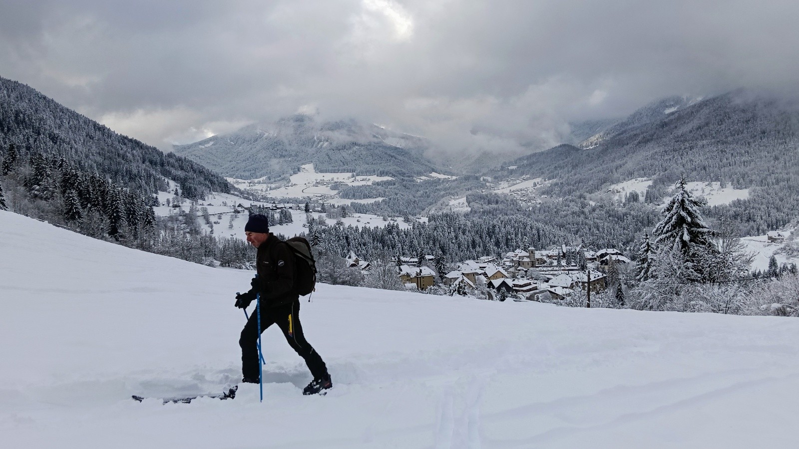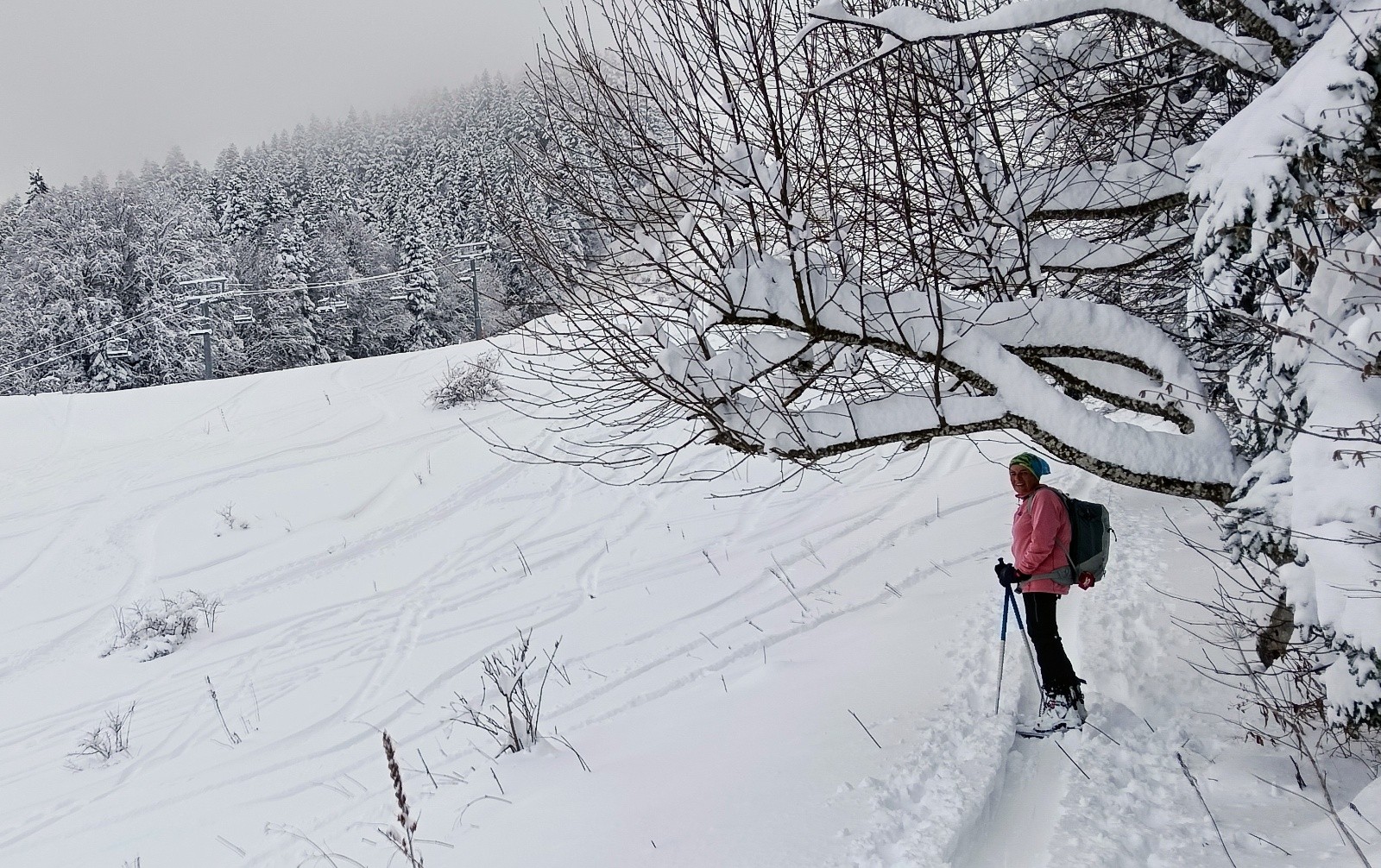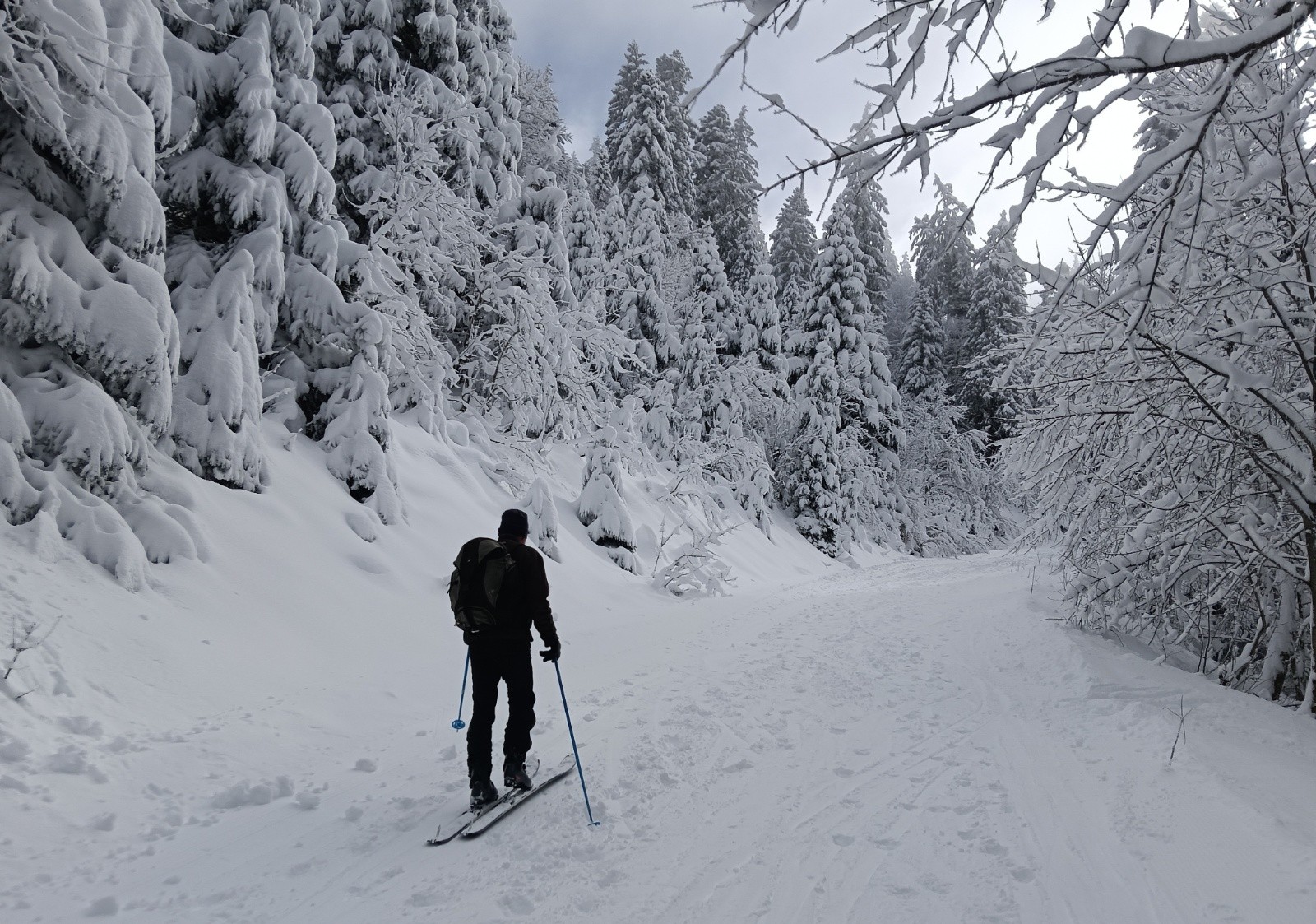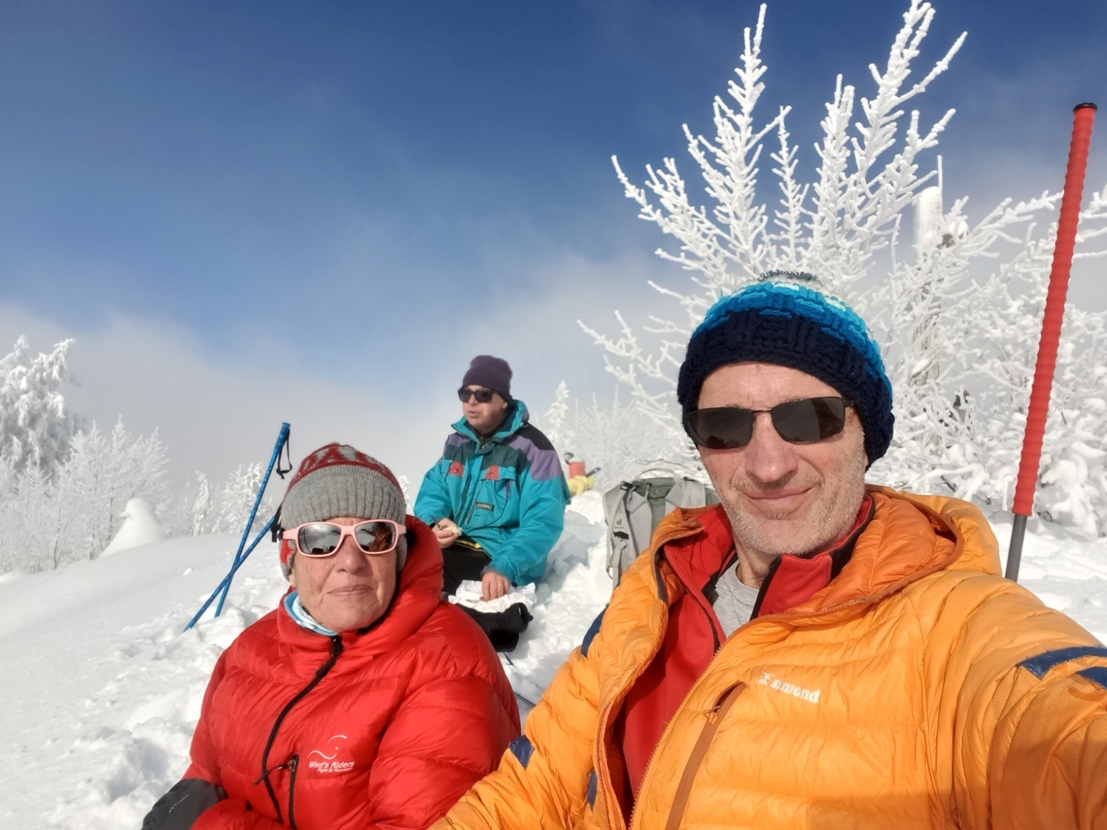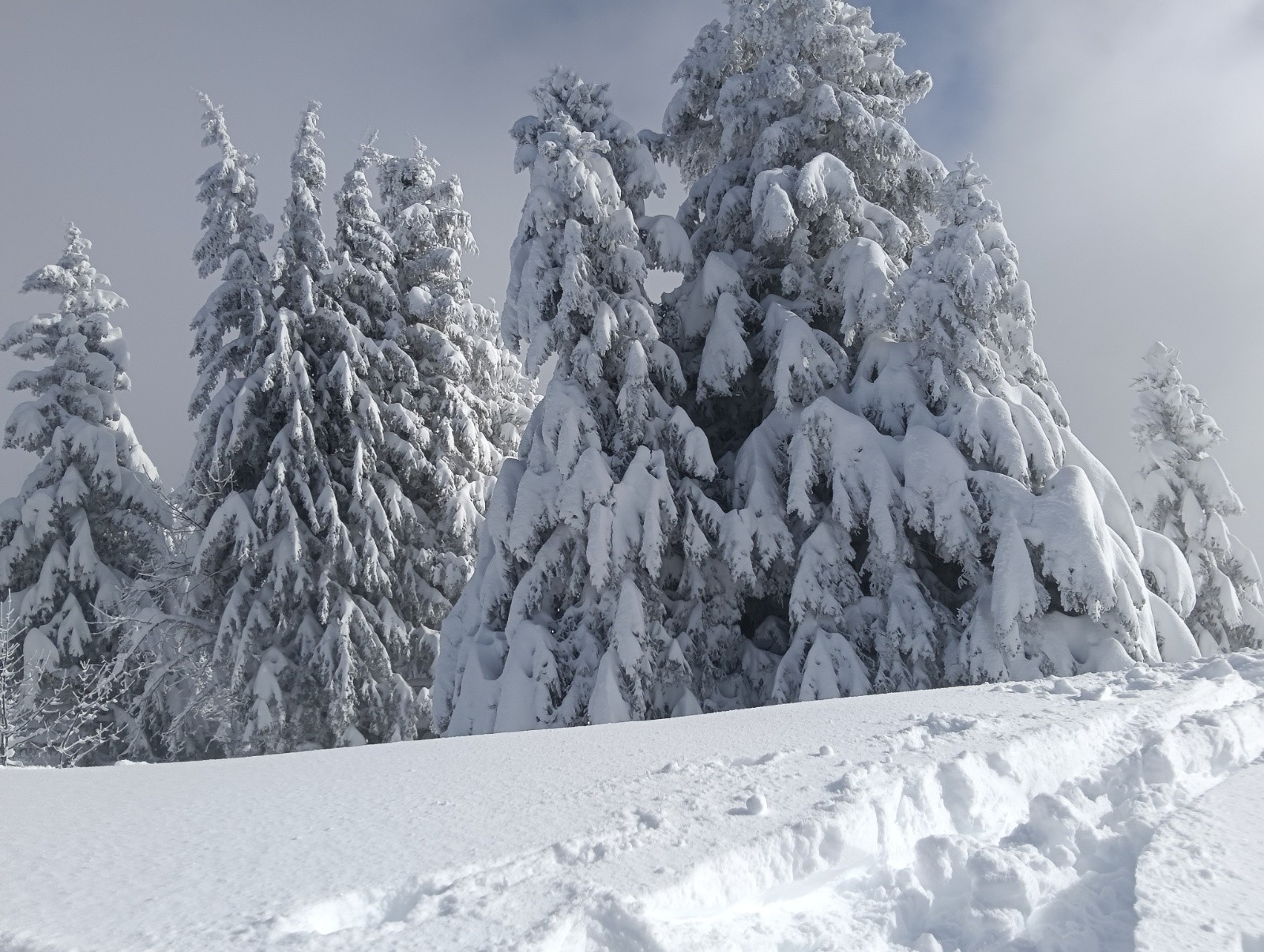 Conditions pour le ski : De la poudreuse légère en haut, 70 cm puisque le socle à coté de la croix a disparu sous la neige. Neige plus lourde sous les Essarts pas toujours de souscouche en bas mais aucune touchette