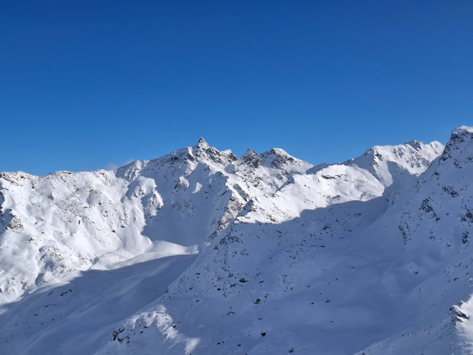 Itinéraire suivi :Cf trace : Mottaret - Départ Télésiège Bouquetin - Intermédiaire Plan des mains - Mont de la chambre - Plan des mains - Sommet Télésiège des Platières - Mottaret.