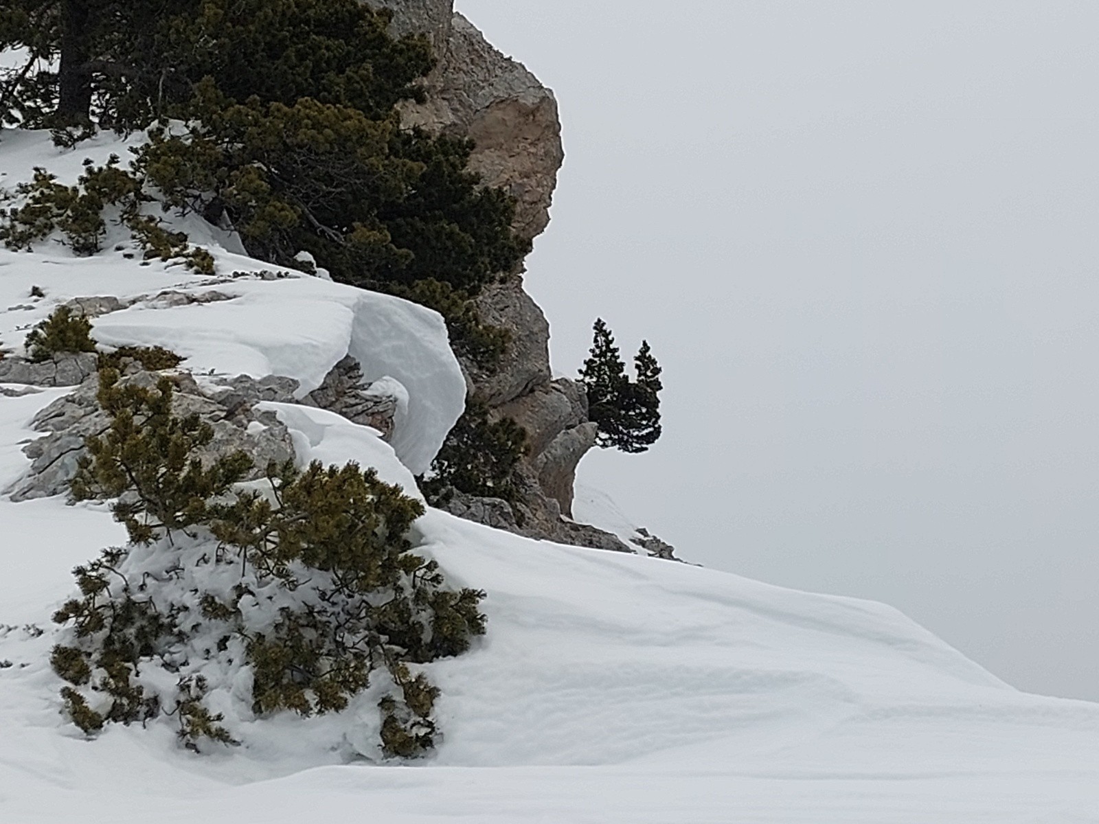 Conditions pour le ski : neige correcte, soufflée sur le haut, puis petite poudreuse sur fond dur (partie intermédiaire jusqu'à la limite de la forêt) bien agréable en cherchant un peu les zones non traffolées, puis neige douce +/- damée sur le bas