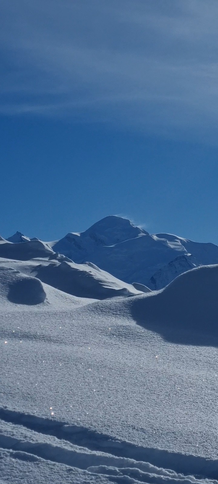 Conditions pour le ski : Top, quelques cm de neige fraiche de la nuit précédente sur une couche de neige encore froide. Neige fraiche légère à la montée et qui s'alourdit un peu en journée. Crête légèrement décapée.
