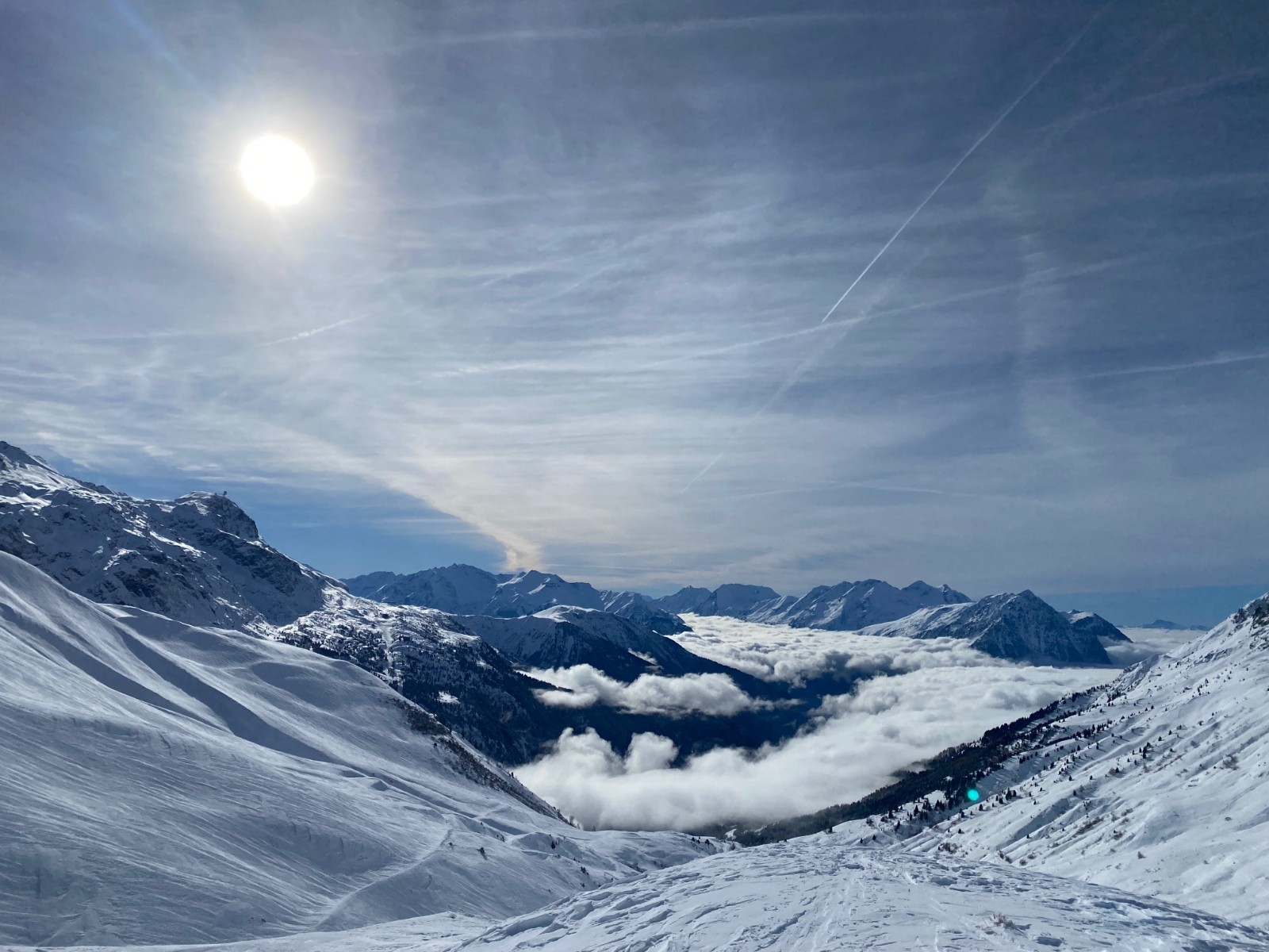 Conditions pour le ski : le vallon est au soleil et ça chauffe