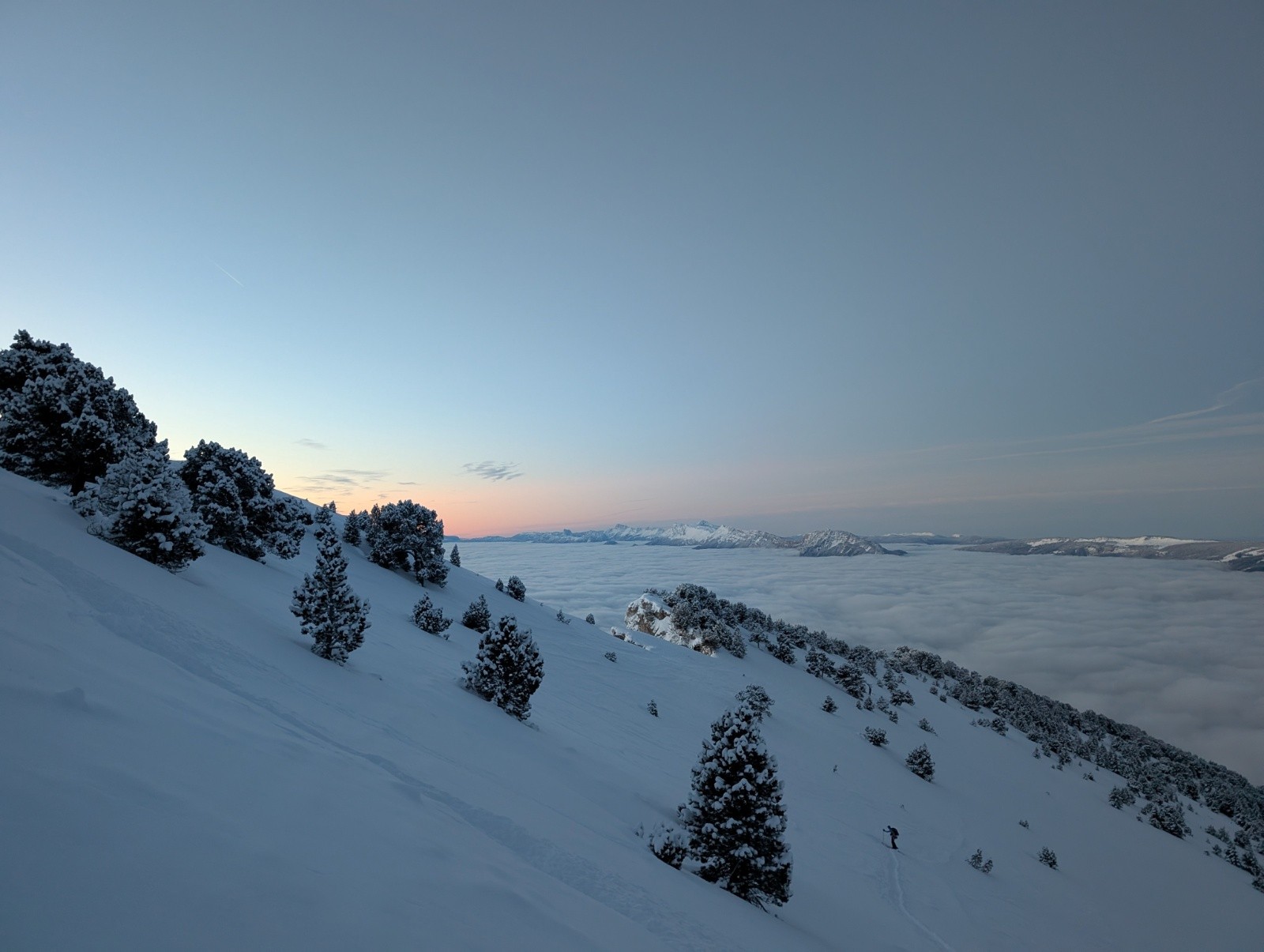 Itinéraire suivi : Voie normale pour la montée, par les paravalanches à la descente.