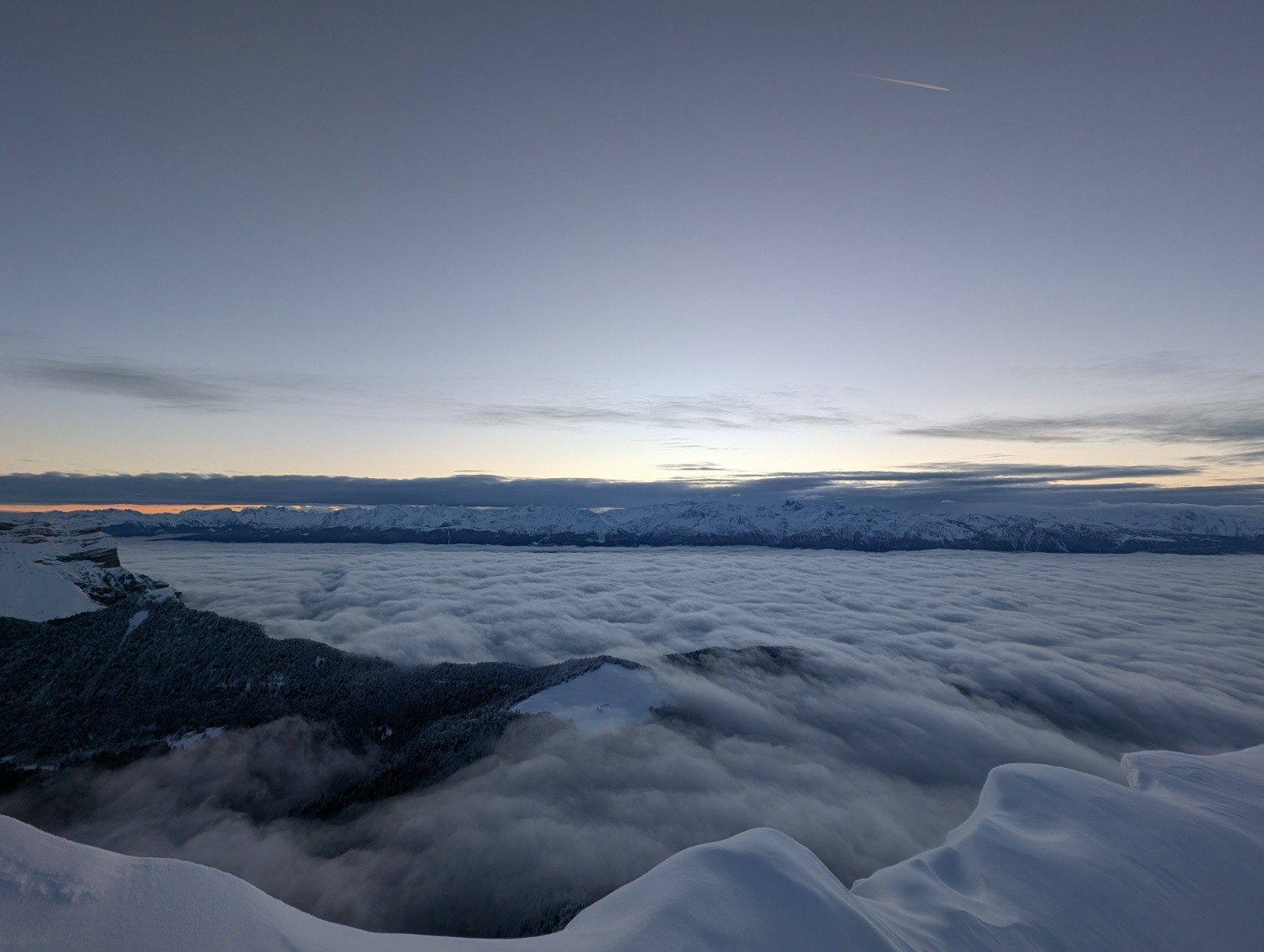 Météo/températures : Mer de nuage au parking, grand beau 100m au dessus