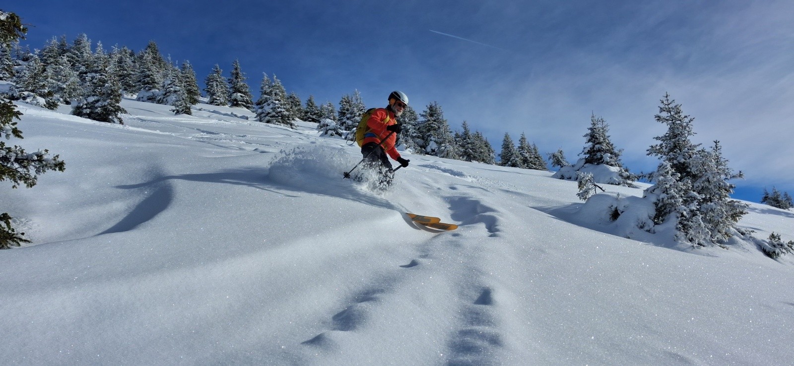Apport dans la nuit de 5cm de neige au parking et 15cm de poudre en altitude. Le tout reposant sur une bonne épaisseur de poudre légèrement tassée.